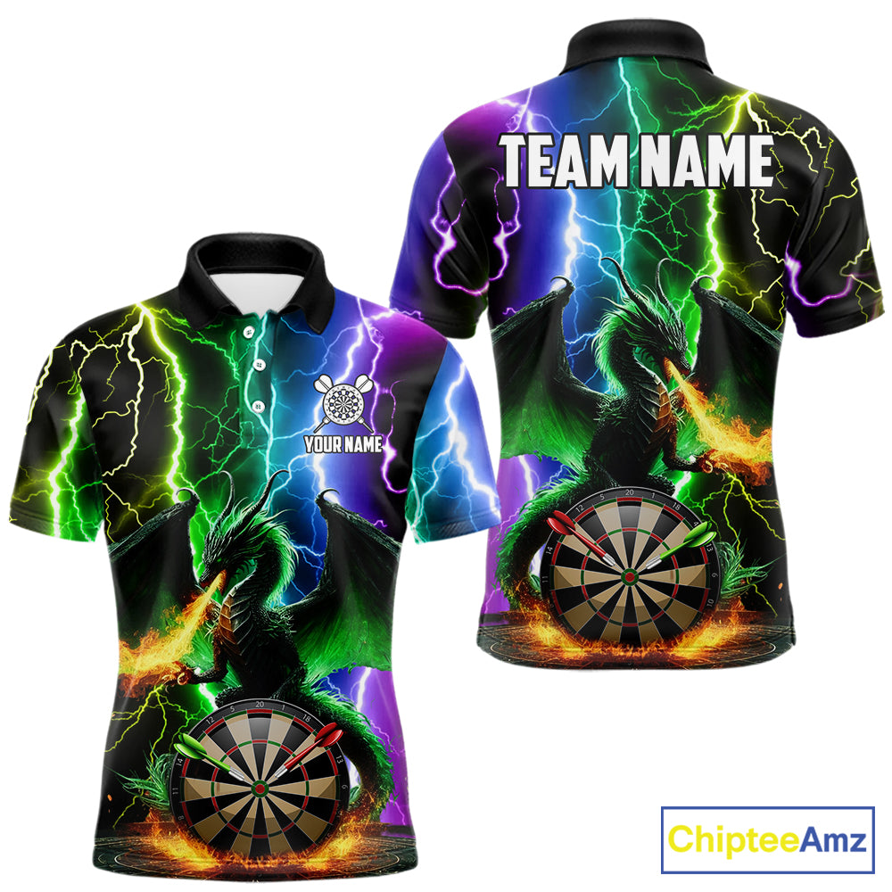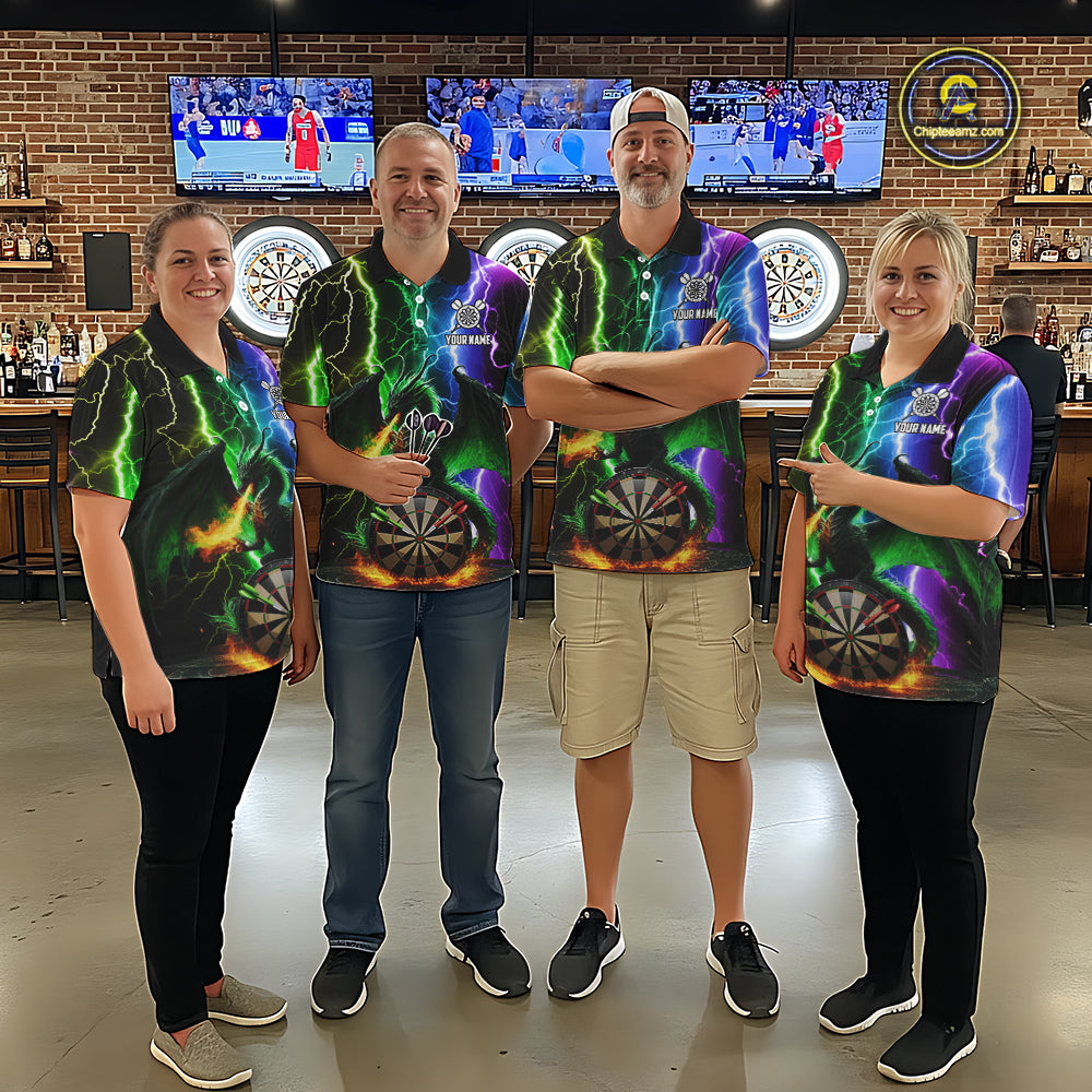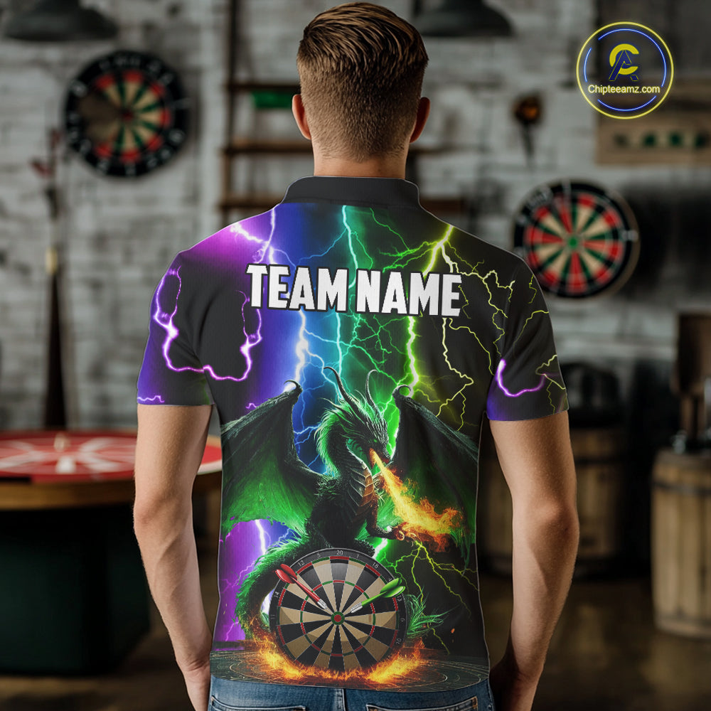 Colorful Lightning Dragon Darts Shirt For Men Custom Darts League Jersey Team Polo & 1/4 Zip TDM5761