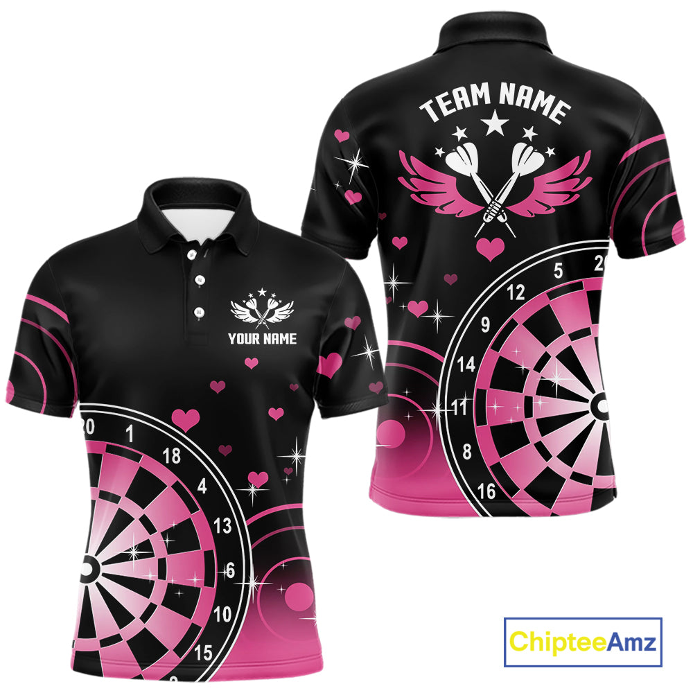 Pink And Black Darts Wings Polo & Quarter Zip Custom Darts Shirt For Men, Valentine Darts Gifts TDM5765