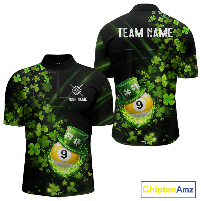 Green Luckiest Shamrock 9 Ball Billiard Shirt For Men Custom St Patrick Day Pool Team Jersey TDM5779