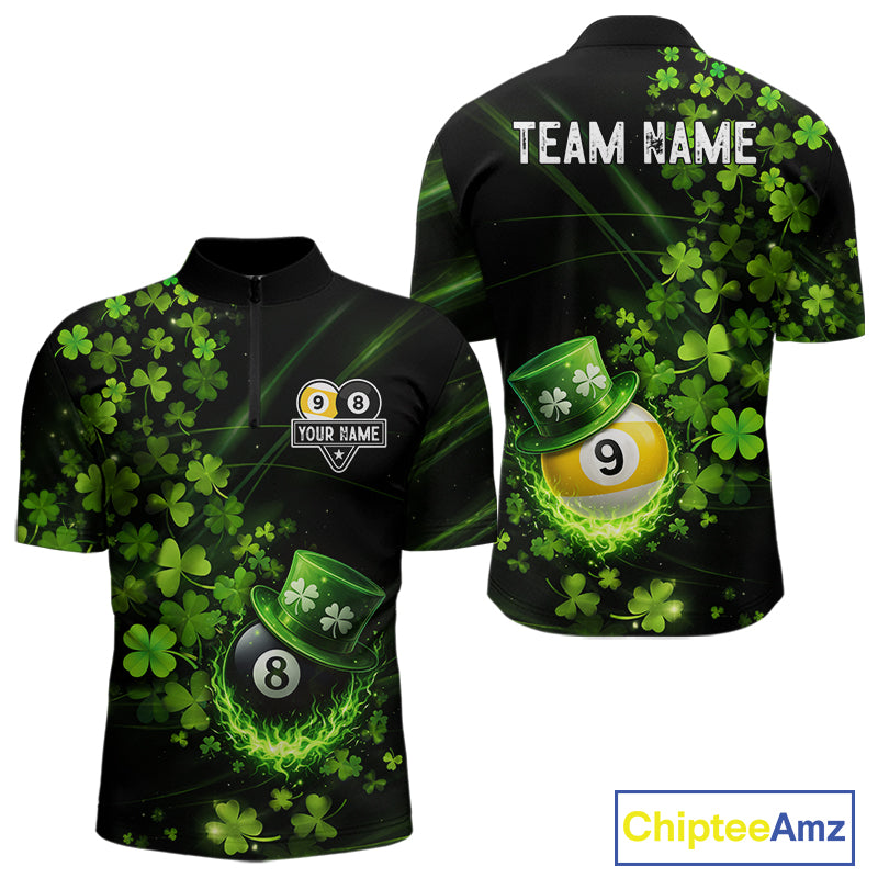 Green Luckiest Shamrock 8 & 9 Ball Billiard Shirt For Men Custom St Patrick Day Pool Team Jersey TDM5780