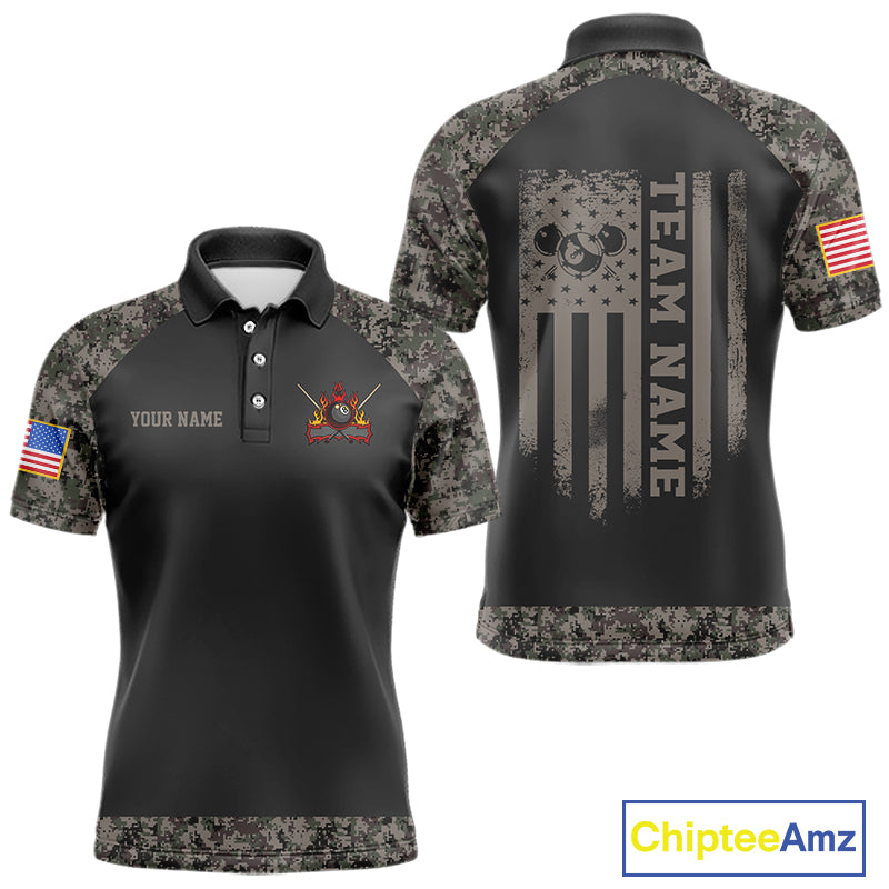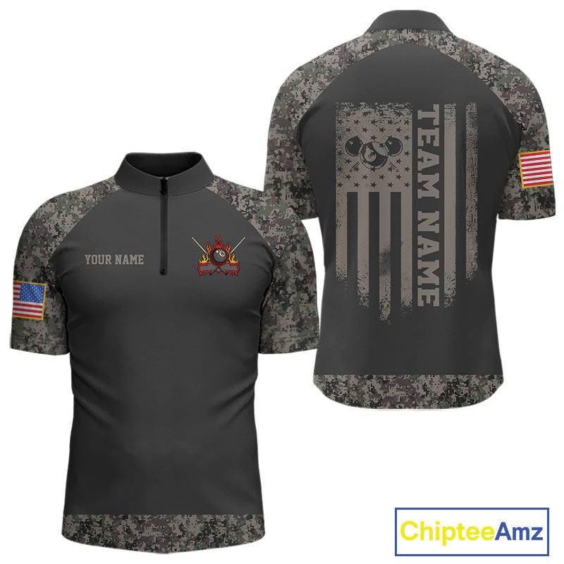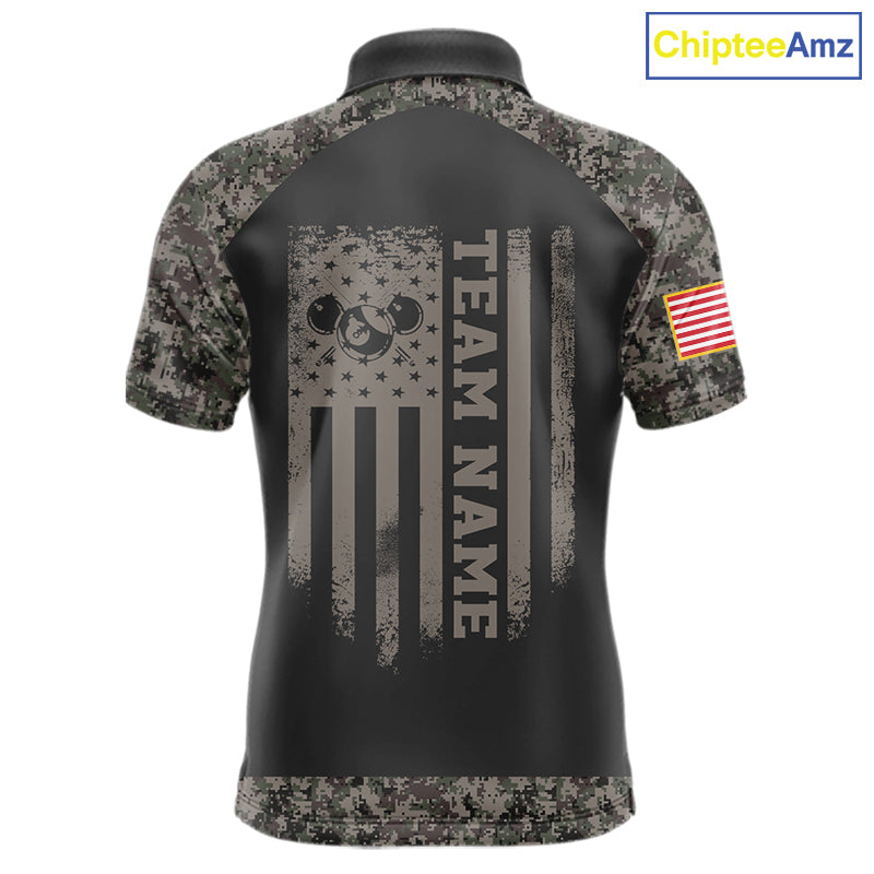 Personalized Retro Camo US Flag Billiard Shirt For Men Custom Pool Team Jersey Polo & 1/4 Zip TDM5793