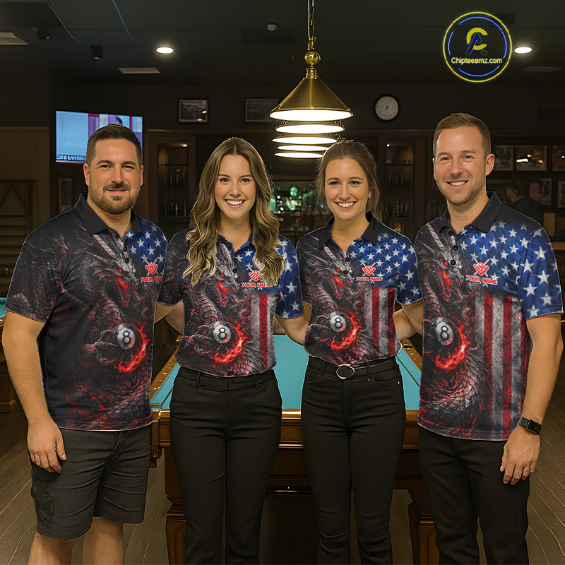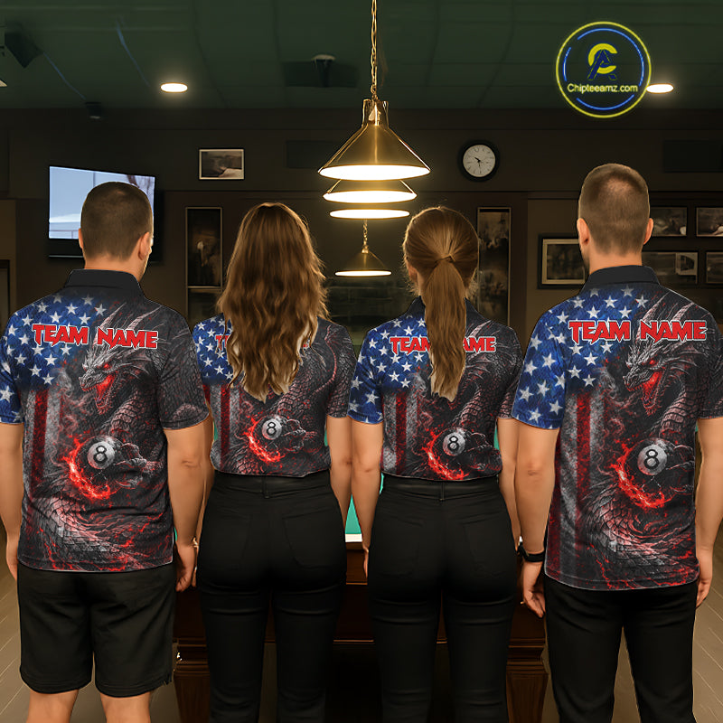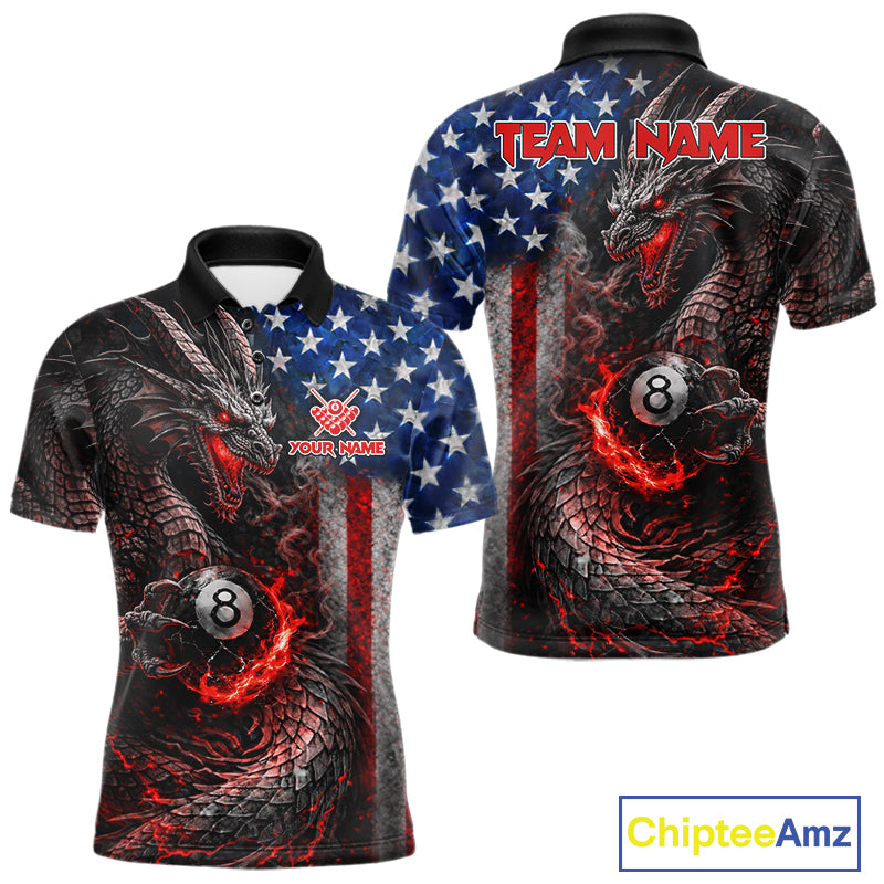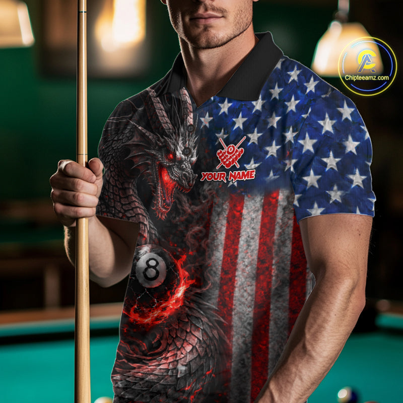 American Flag Dragon 8 Ball Fire Billiard Shirt For Men Custom Pool Team Jersey Polo, 1/4 Zip TDM6035