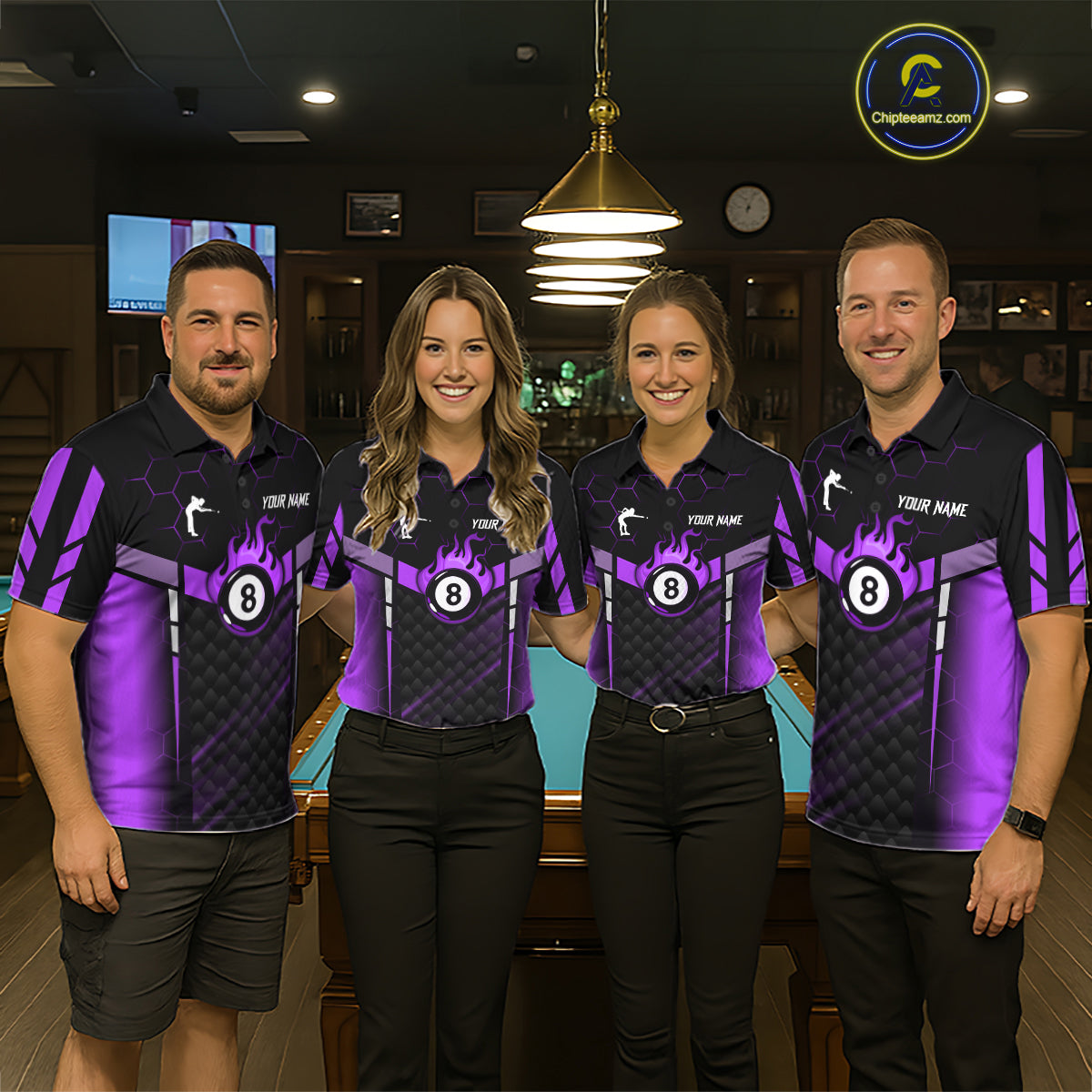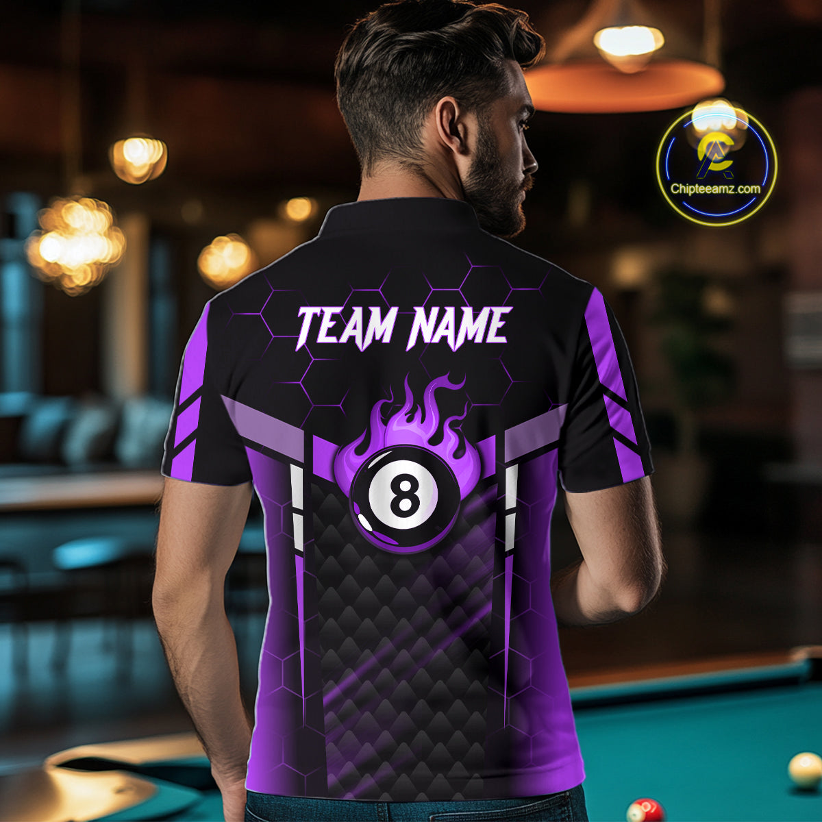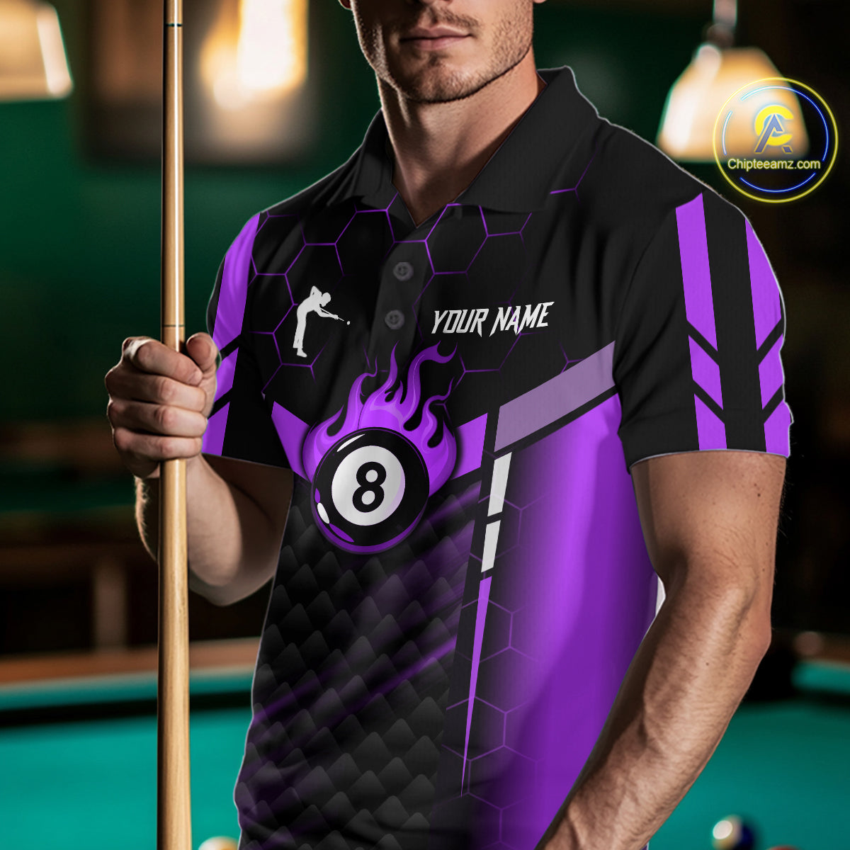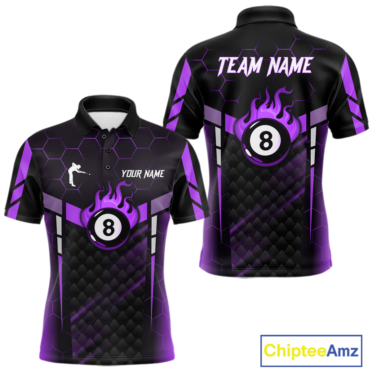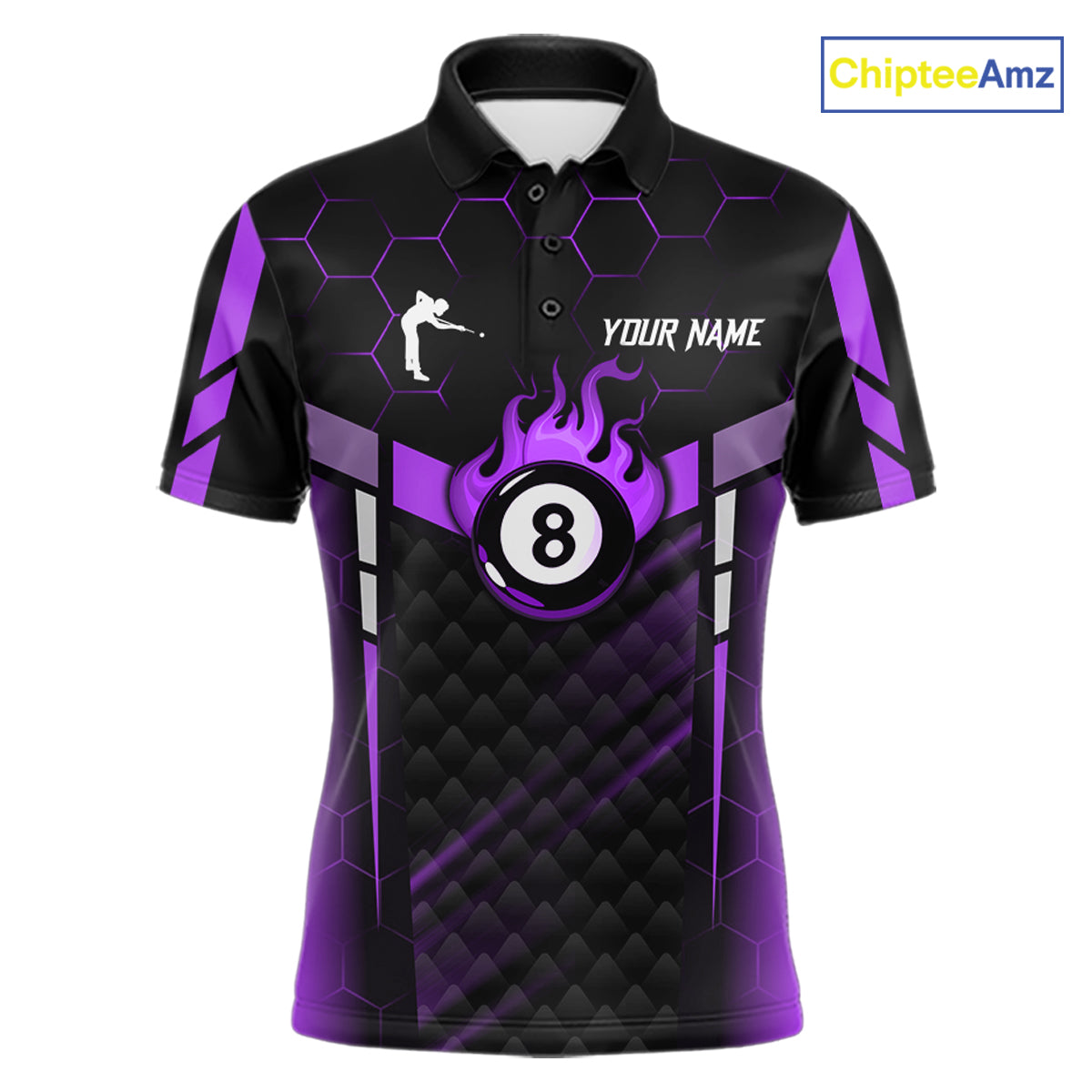 Personalized Purple 8 Ball Flame Billiard Polo & Quarter Zip For Men, 8 Ball Pool Team Jersey TDM6039