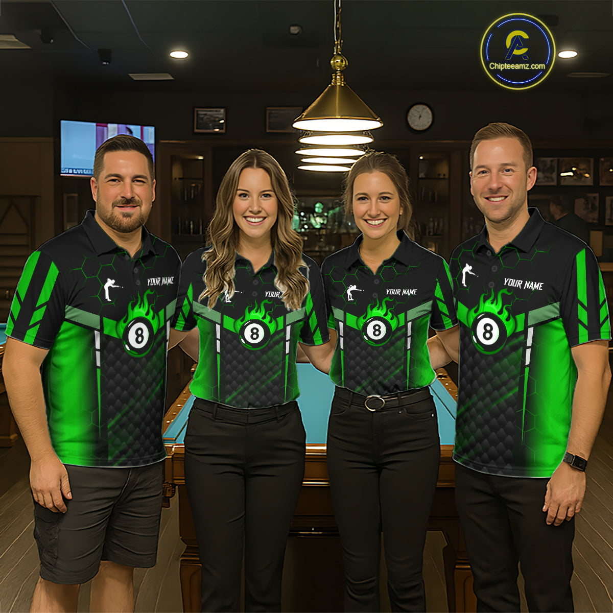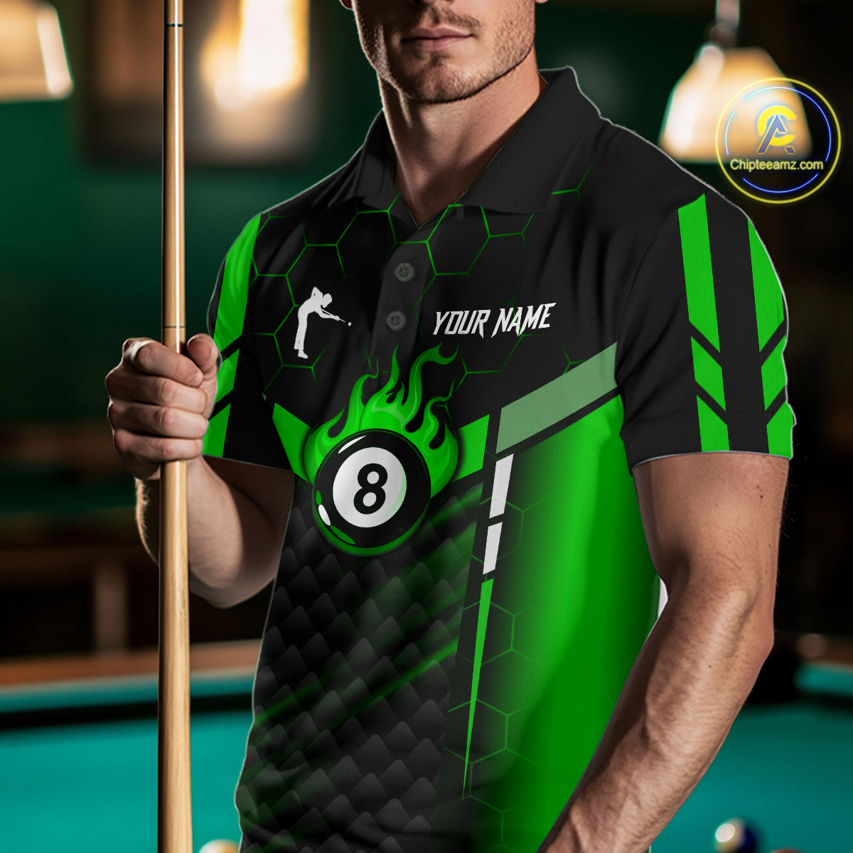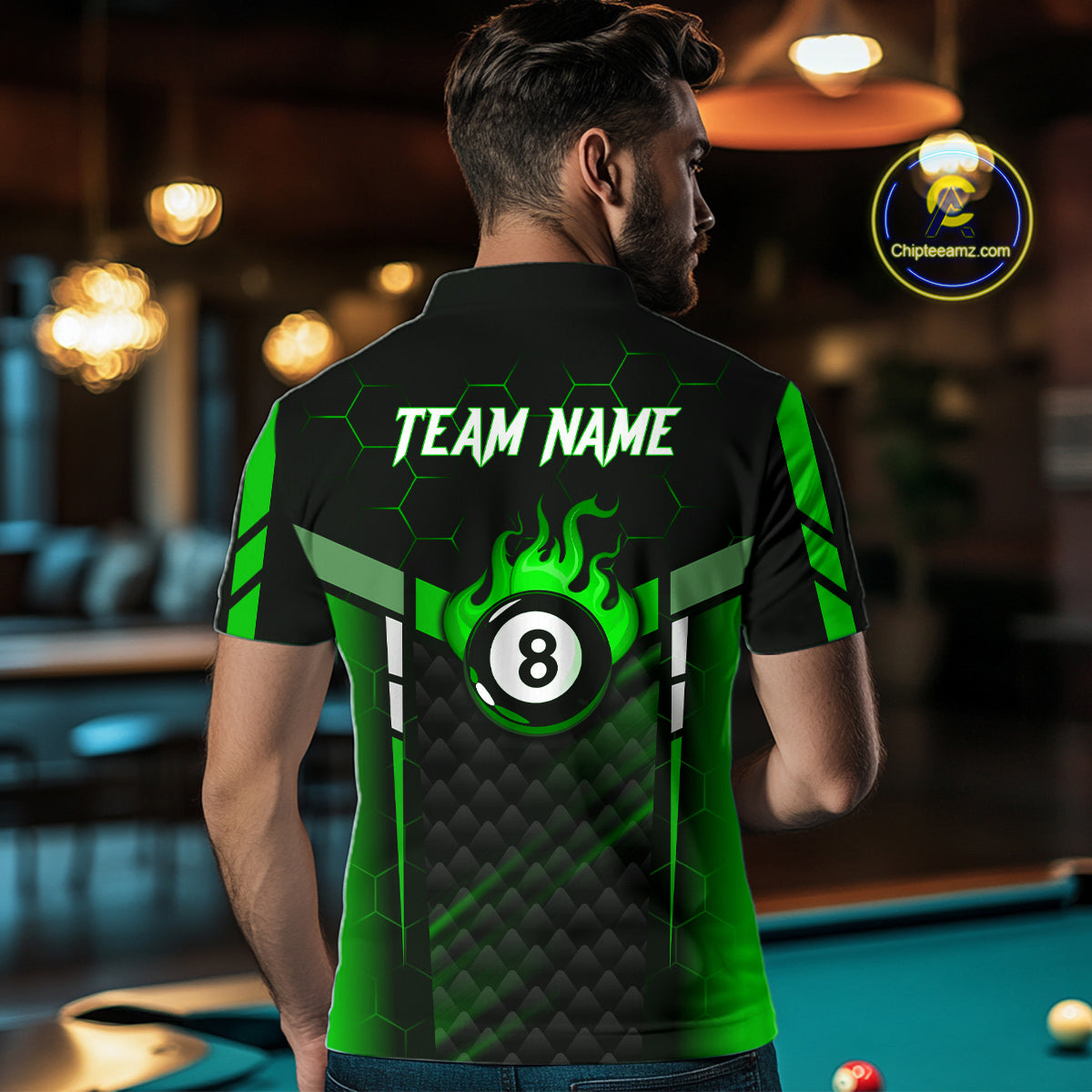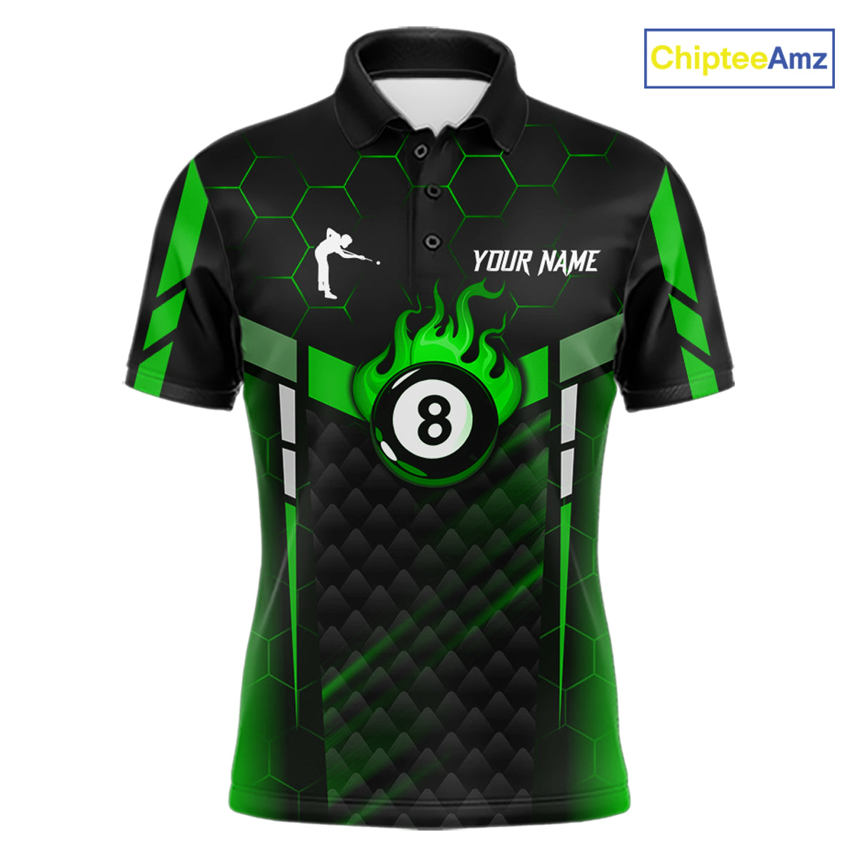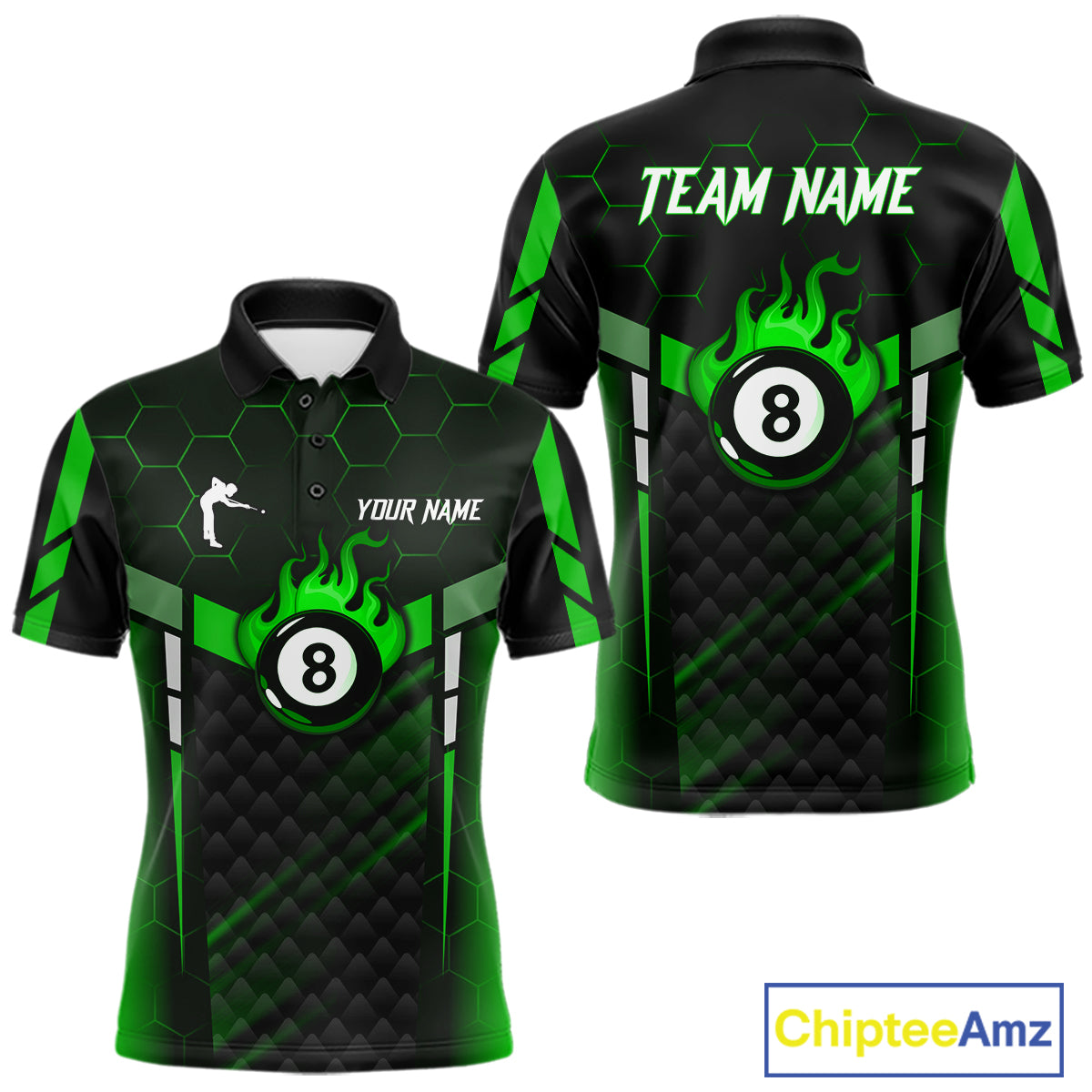 Personalized Green 8 Ball Flame Billiard Polo & Quarter Zip For Men, 8 Ball Pool Team Jersey TDM6040