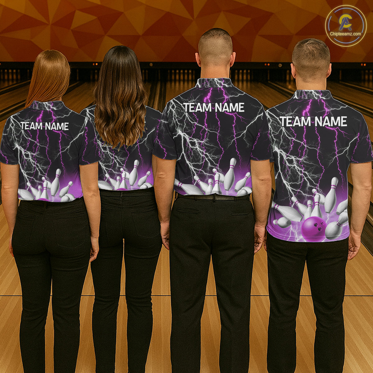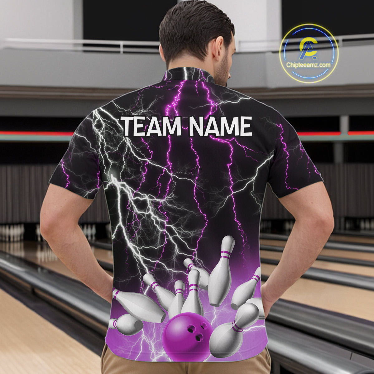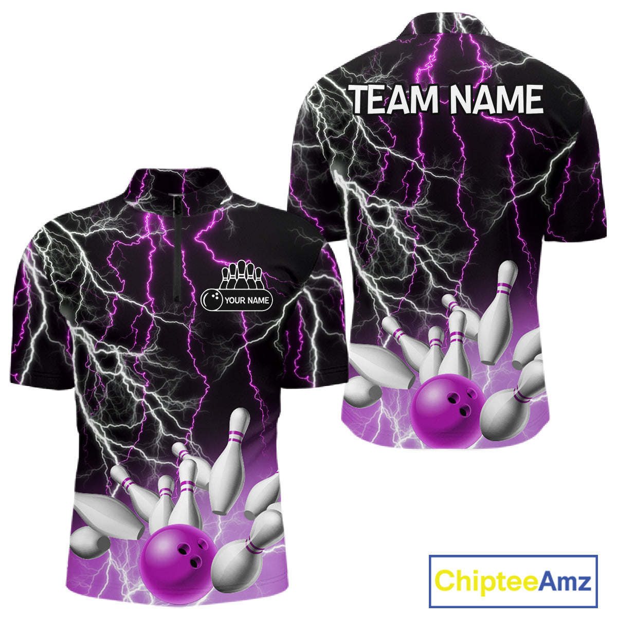 Men's bowling Polo, Quarter Zip shirts Custom Purple lightning thunder team bowling league jerseys NQS11263