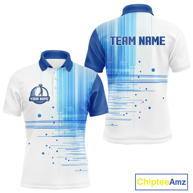 Mens Golf Polo Shirt Custom Blue Pattern Team Golf Tops, White Golf Golf Outfit For Men NHN0087