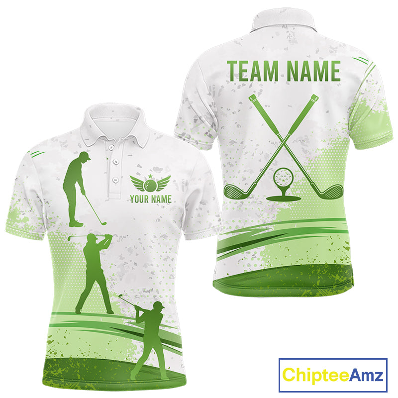 Mens Golf Polo Shirts Custom Green And White Pattern Golf Tops For Men, Personalized Golf Gifts NHN0037