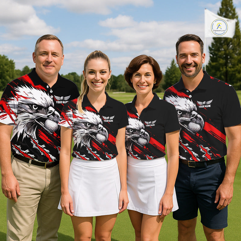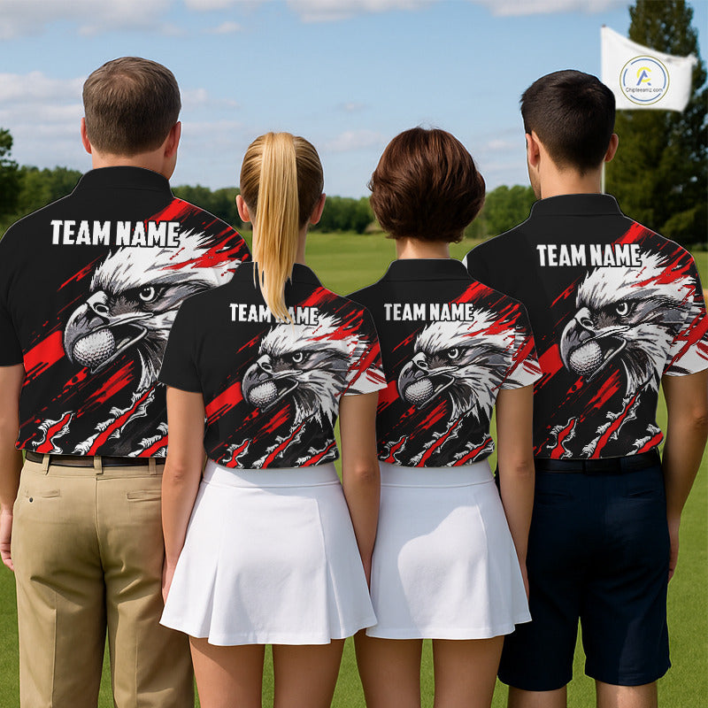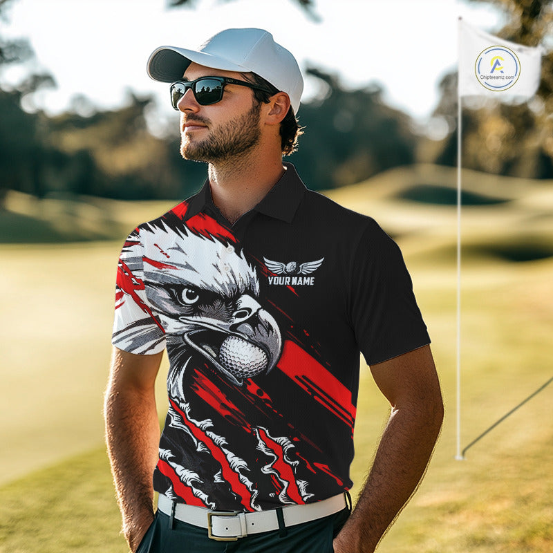 Mens Golf Polo Shirts Custom Red And Black Grunge Pattern Eagle Golf Shirts For Men, Golf Apparel NHN0062
