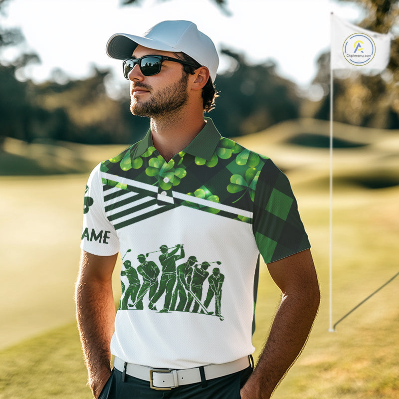 Mens Golf Polos Shirts Custom Green Clover St Patricks Day Plaid Pattern Golf Tops NHN0143