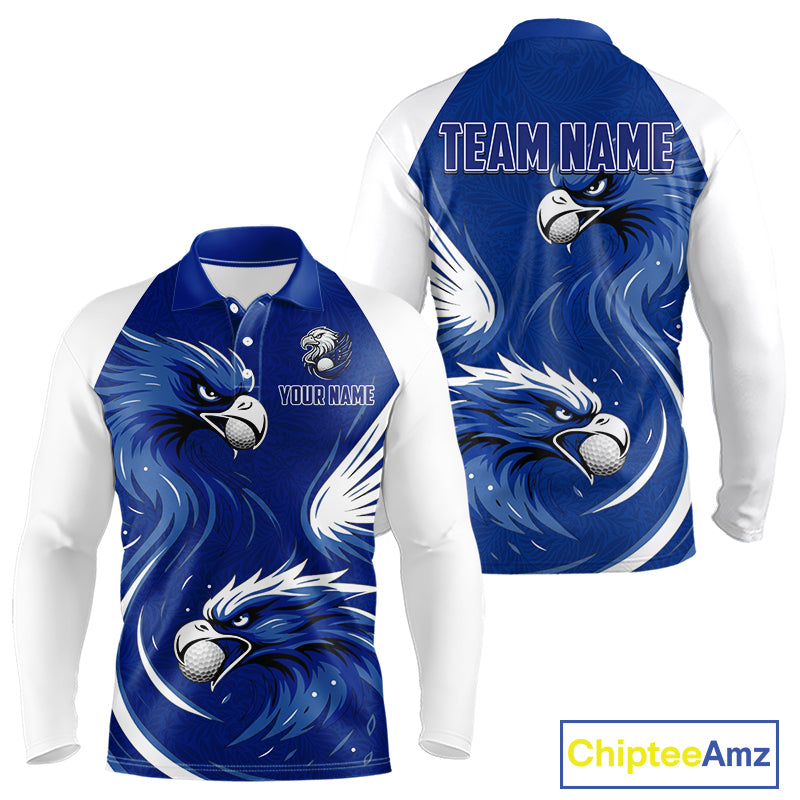 Mens Long Sleeve Golf Polo Shirt Custom Blue Eagle Golf Shirts For Team, Golf Top For Men NHN0081
