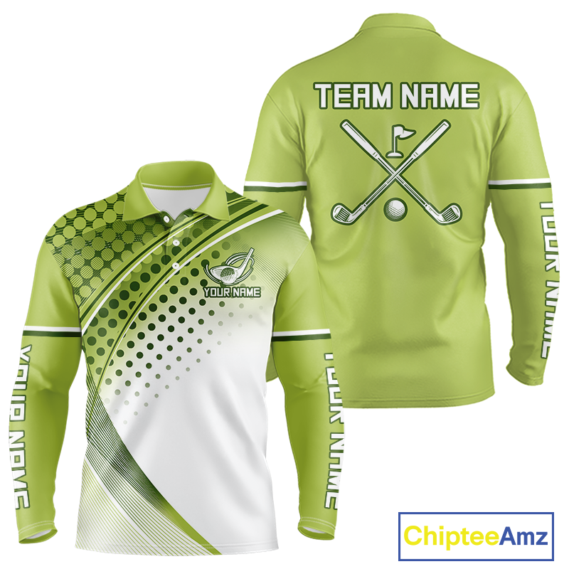 Mens Long Sleeve Golf Polo Shirt Custom Green & White Golf Shirts For Team Personalized Golf Gifts NHN0096