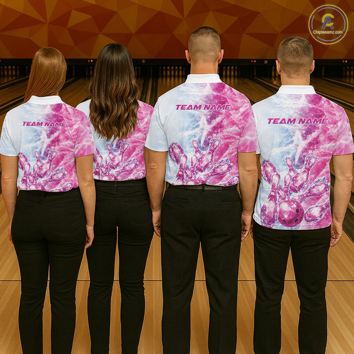 Custom Blue And Pink Ice Crystal Bowling Team Shirts, Bowling League Shirt Bowling Jerseys Multi Styles IPHW10422