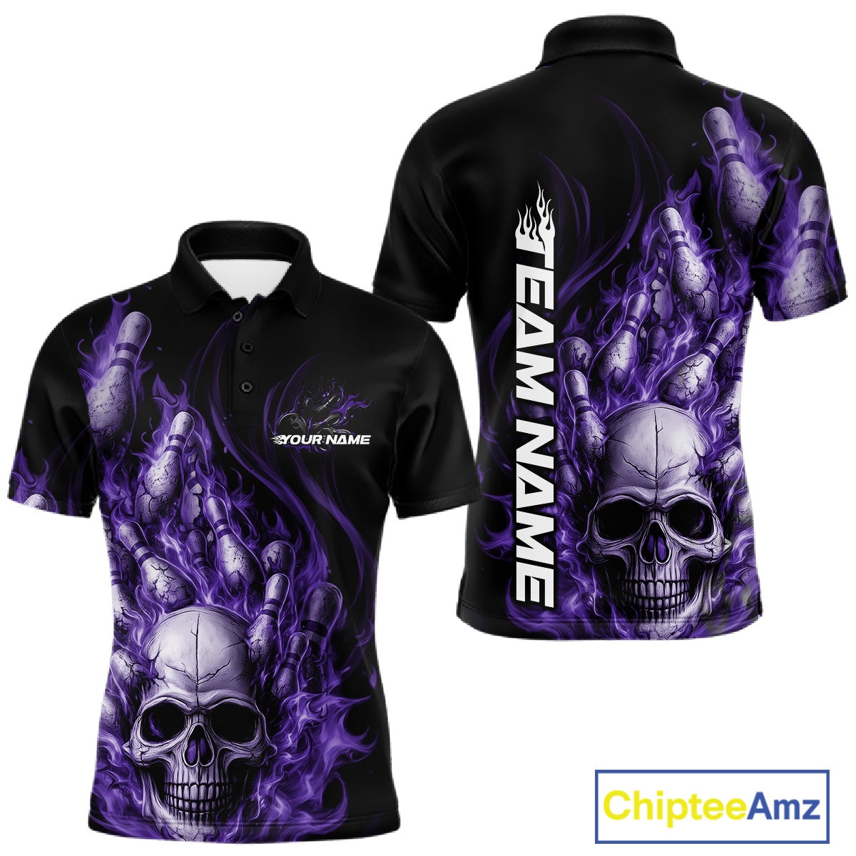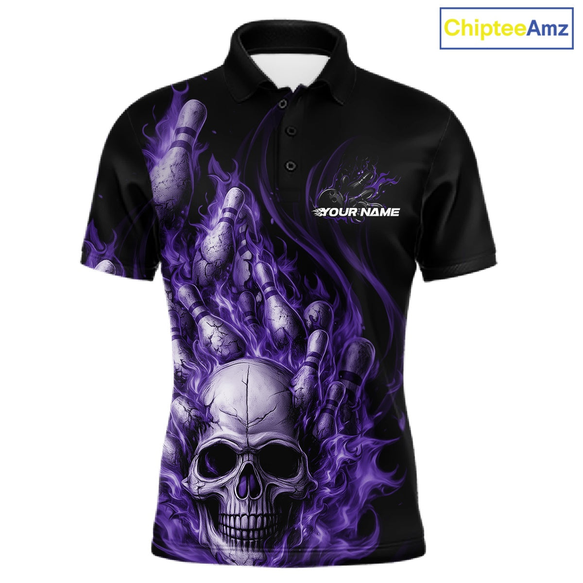 Custom Multi Styles Purple Flame Skull Halloween Bowling Team Shirts, Bowling Tournament Shirt Bowling Jersey IPHW10441