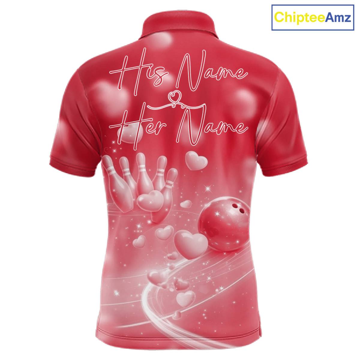 Custom Red Valentine Bowling Couple Shirts, Red Heart Theme Bowling Jerseys With His Name And Her Name IPHW10469