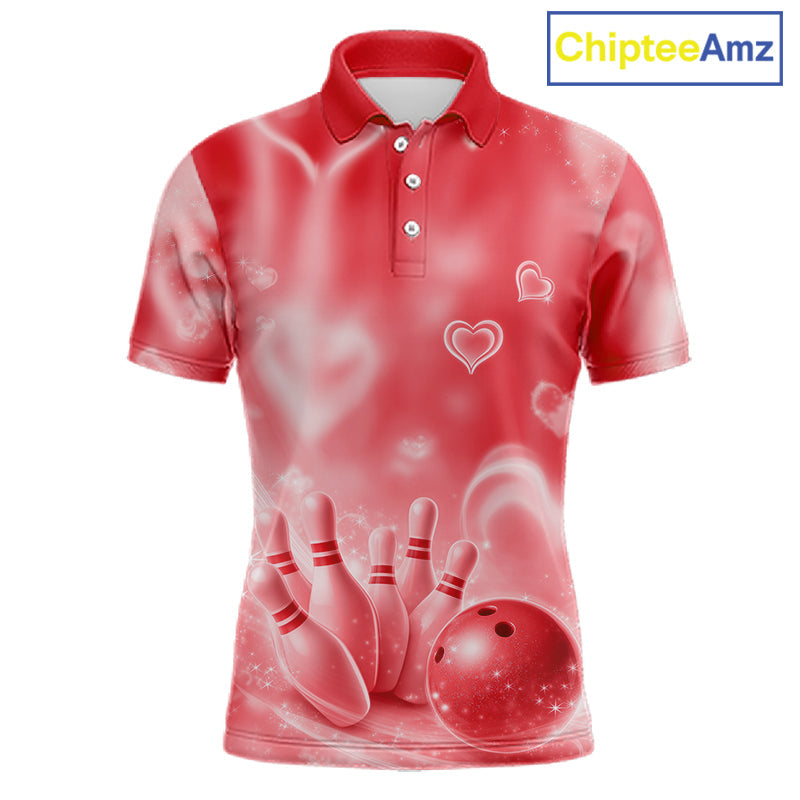 Custom Red Valentine Bowling Couple Shirts, Red Heart Theme Bowling Jerseys With His Name And Her Name IPHW10473