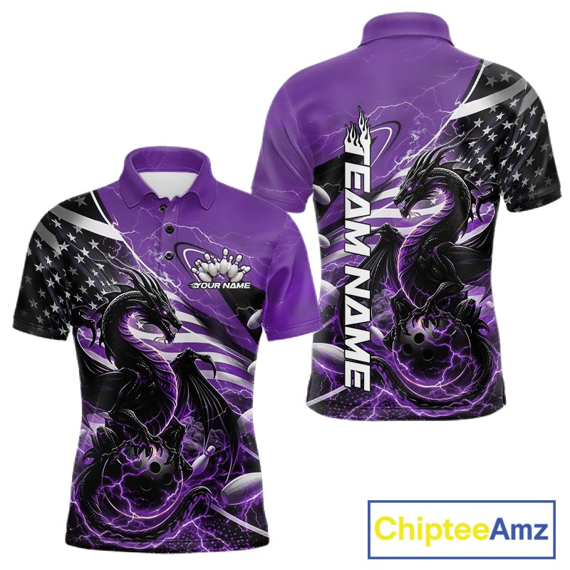 Custom Purple Thunder Lightning Patriotic Dragon Bowling Shirts, Freedom US Flag Bowling Jerseys Bowlers Outfit IPHW10485