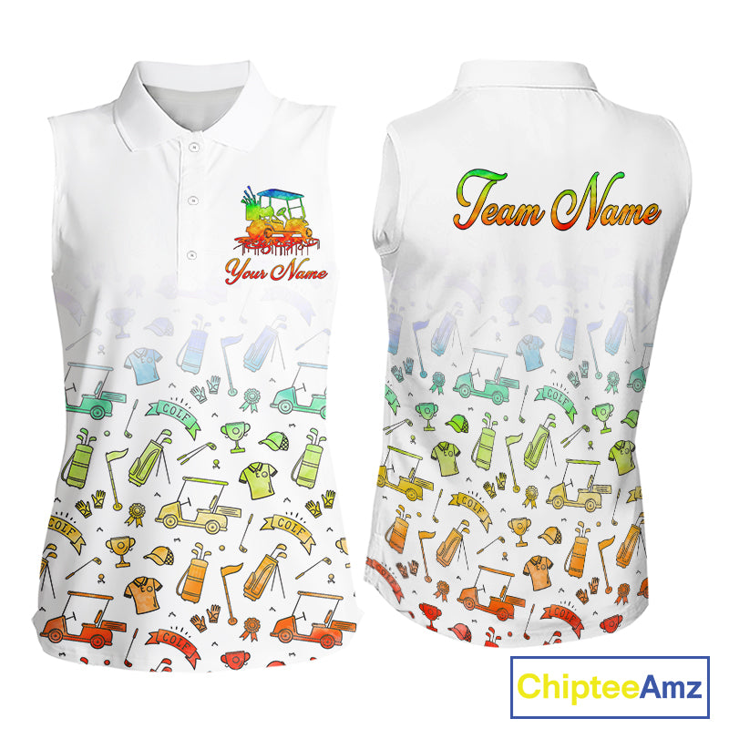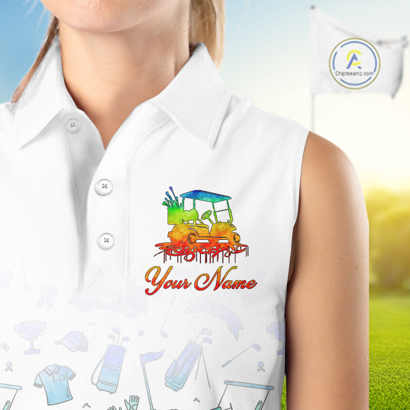 Womens Sleeveless Golf Polo Shirts Colorful Tie Dye Pattern Custom Name, Golf Shirts For Ladies NBT500
