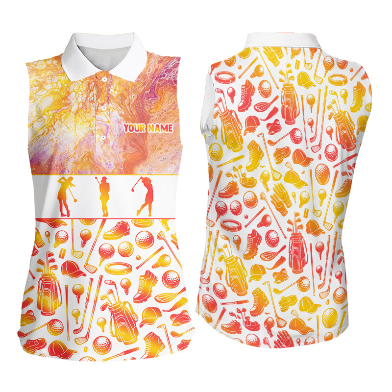 Womens Sleeveless Golf Polo Shirts Custom Name Marble Color, Personalized Golf Shirt For Women NBT502