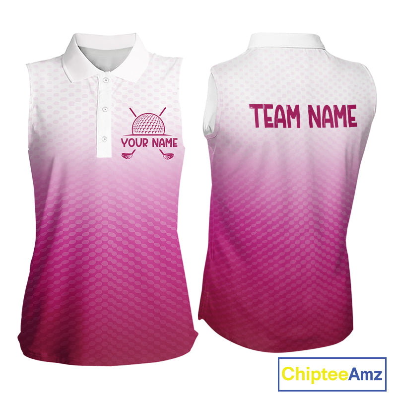 Pink White Womens Sleeveless Polo Golf Shirts Custom Name Golf Shirt For Women, Golf Team Clothes NBT505