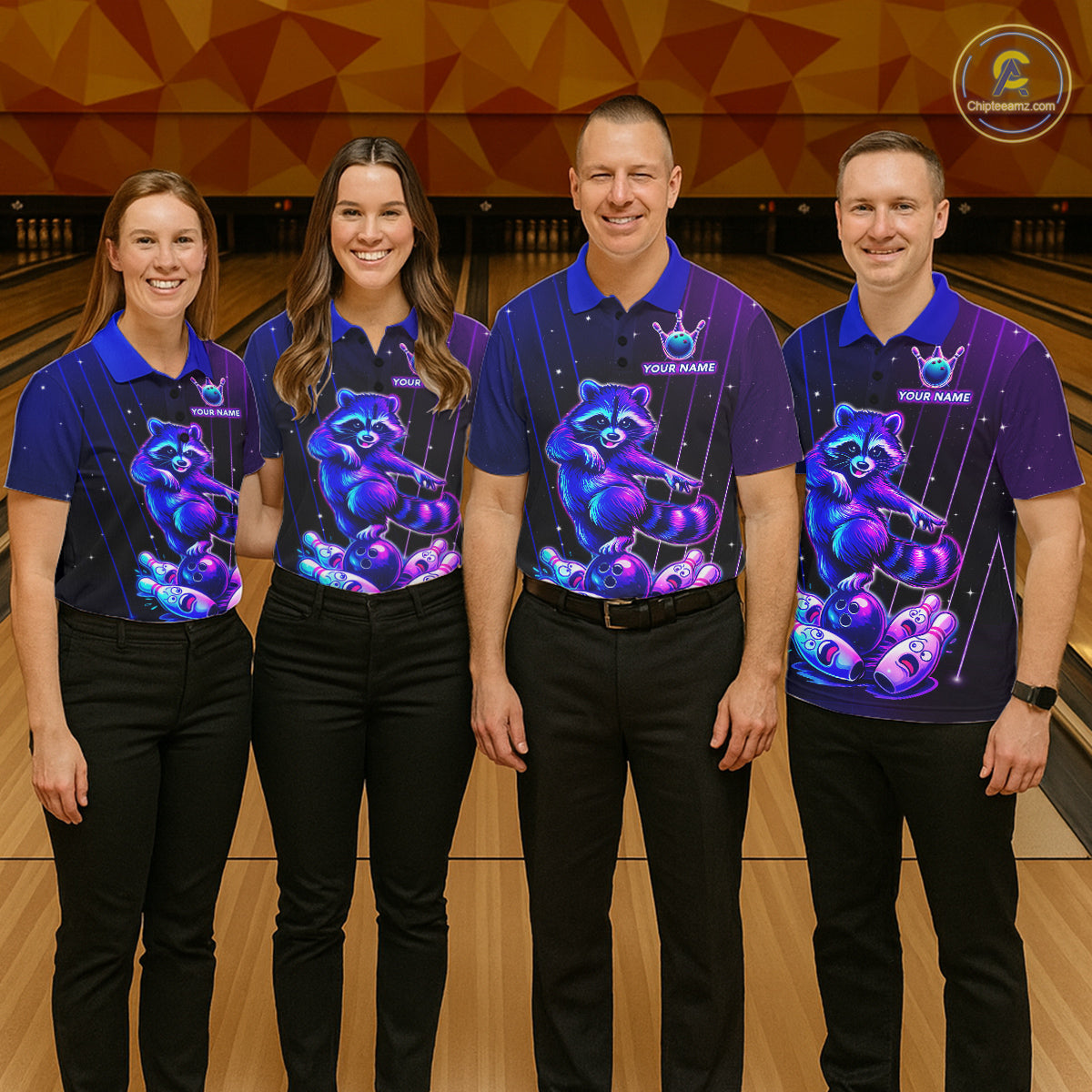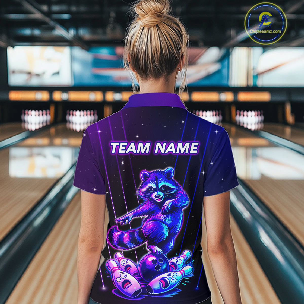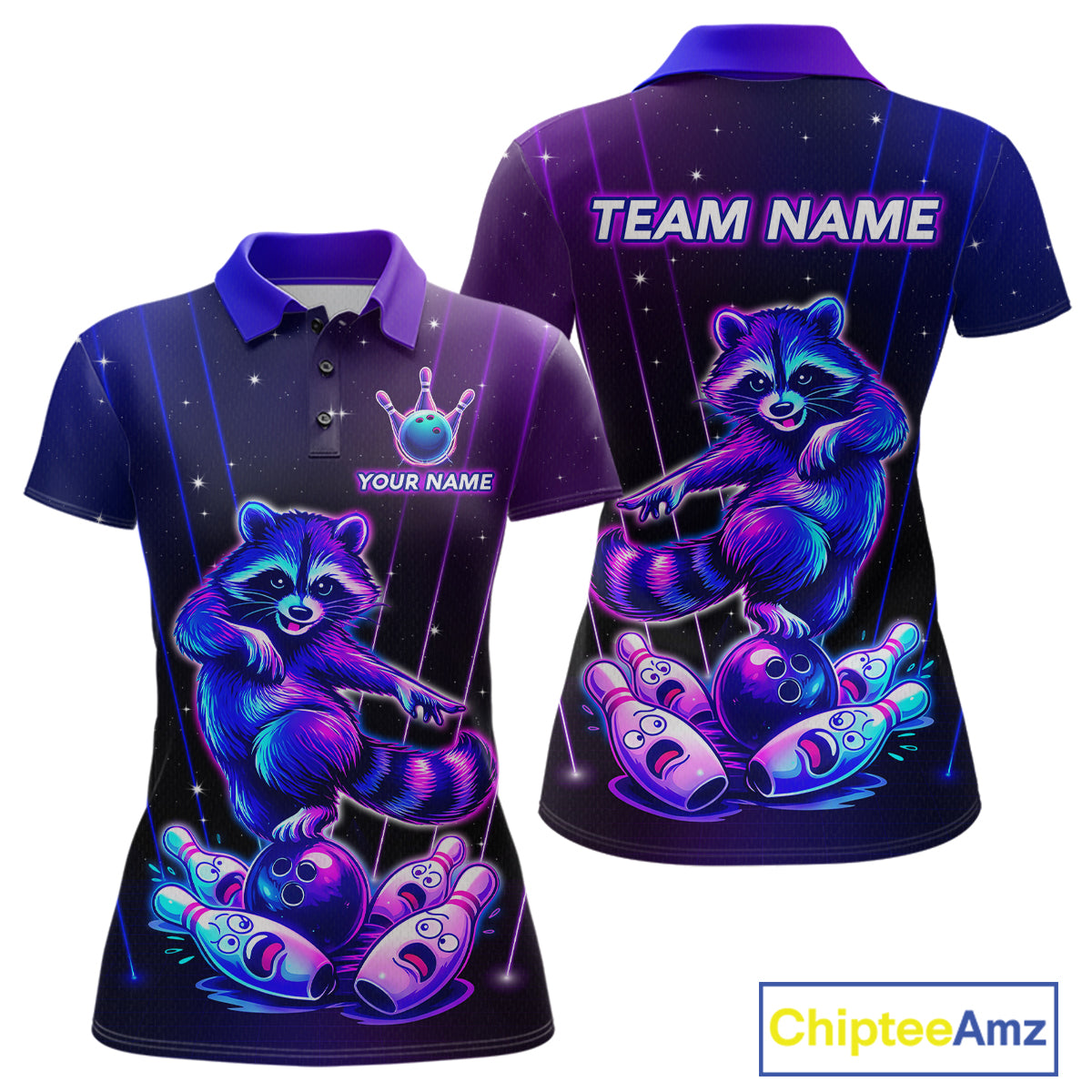 Neon Raccoon Bowling Shirt for Women Custom Bowling Team Jersey Polo & 1/4-Zip Bowling Outfit QZT848