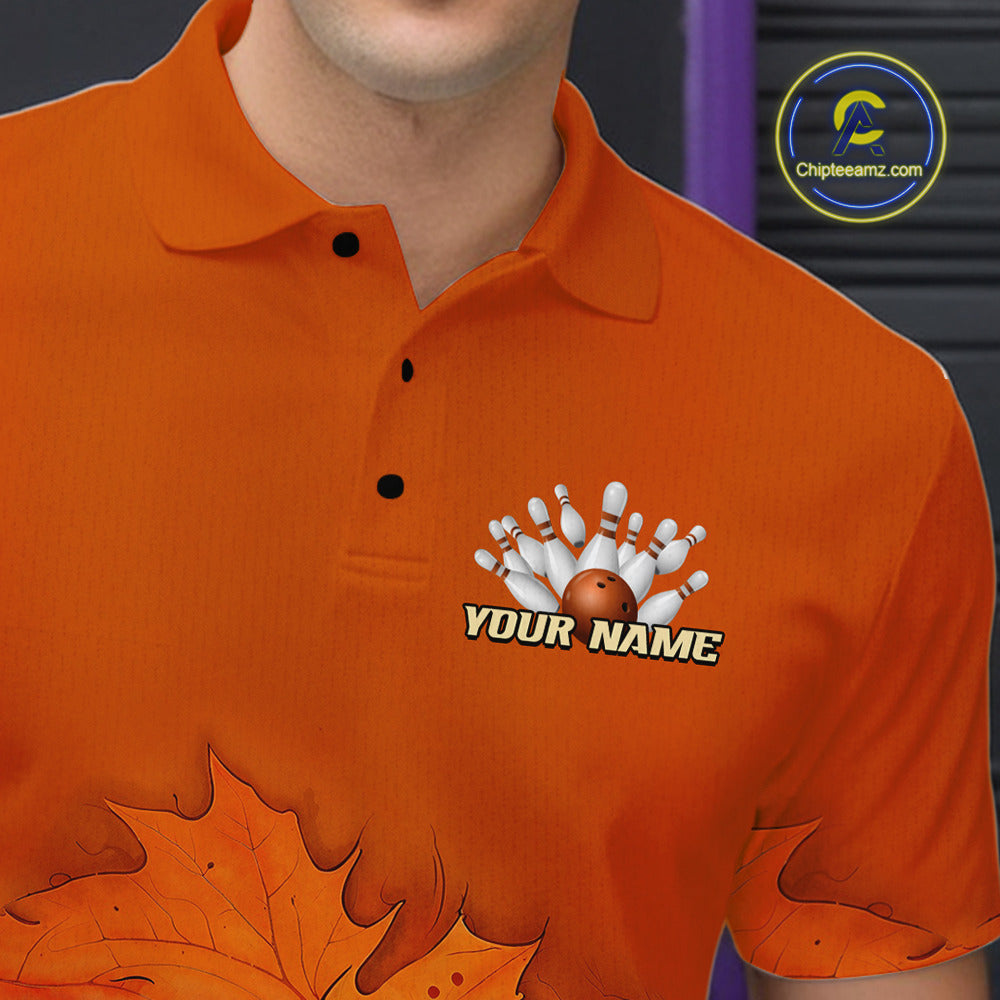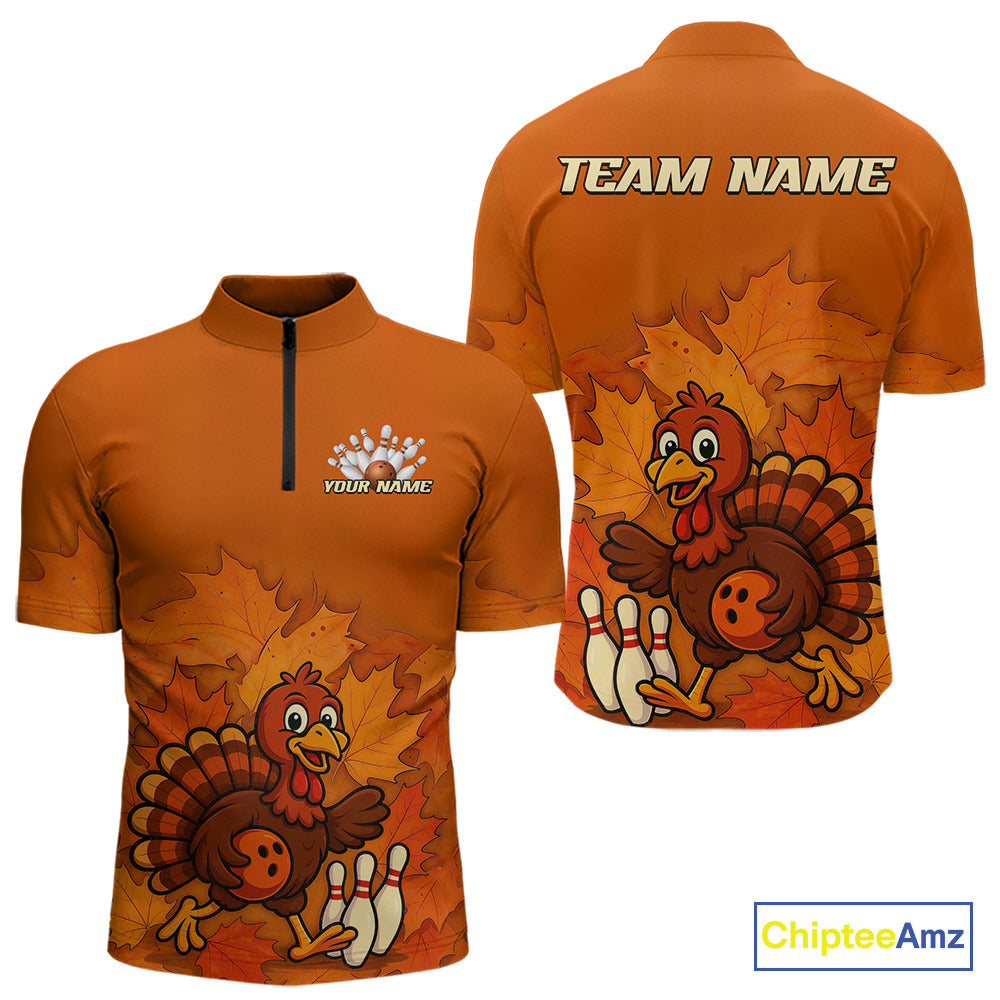 Orange Autumn pattern Custom Turkey Bowling Shirts For Men, Thanksgiving Bowling Team Jerseys NQS10698