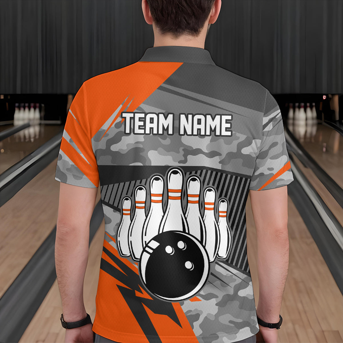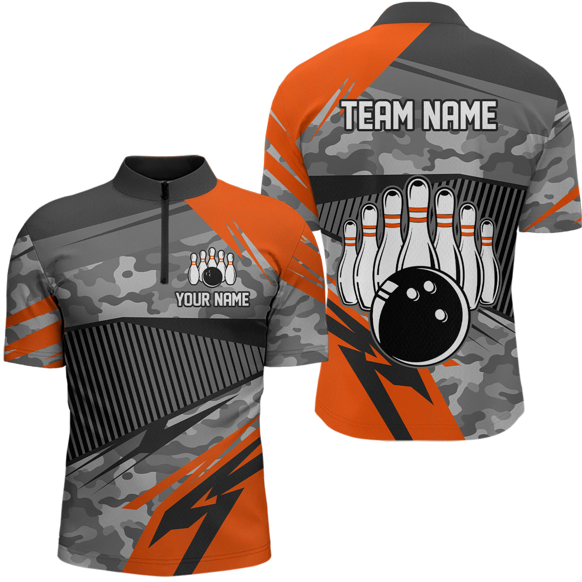 Orange Camo Bowling Shirts for Women Men Custom Team Bowling Polo & 1/4 Zip Shirt MBL61