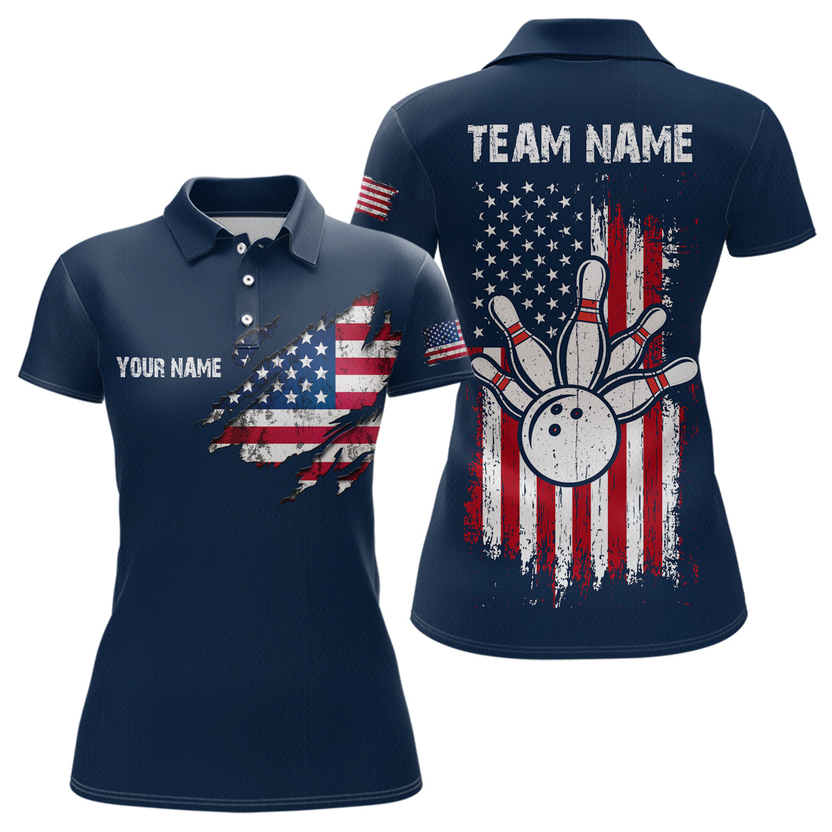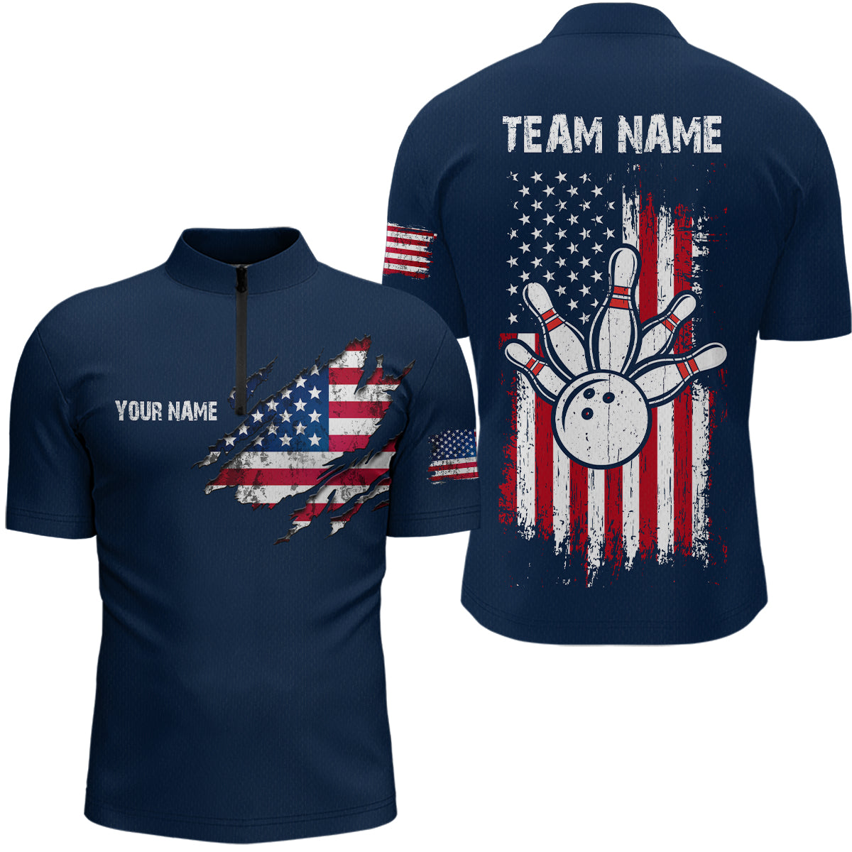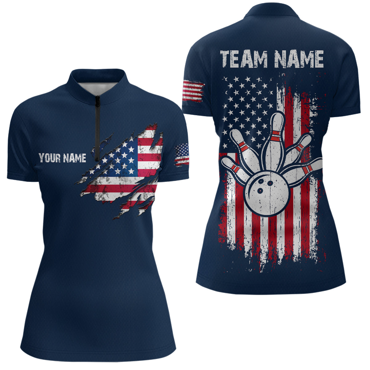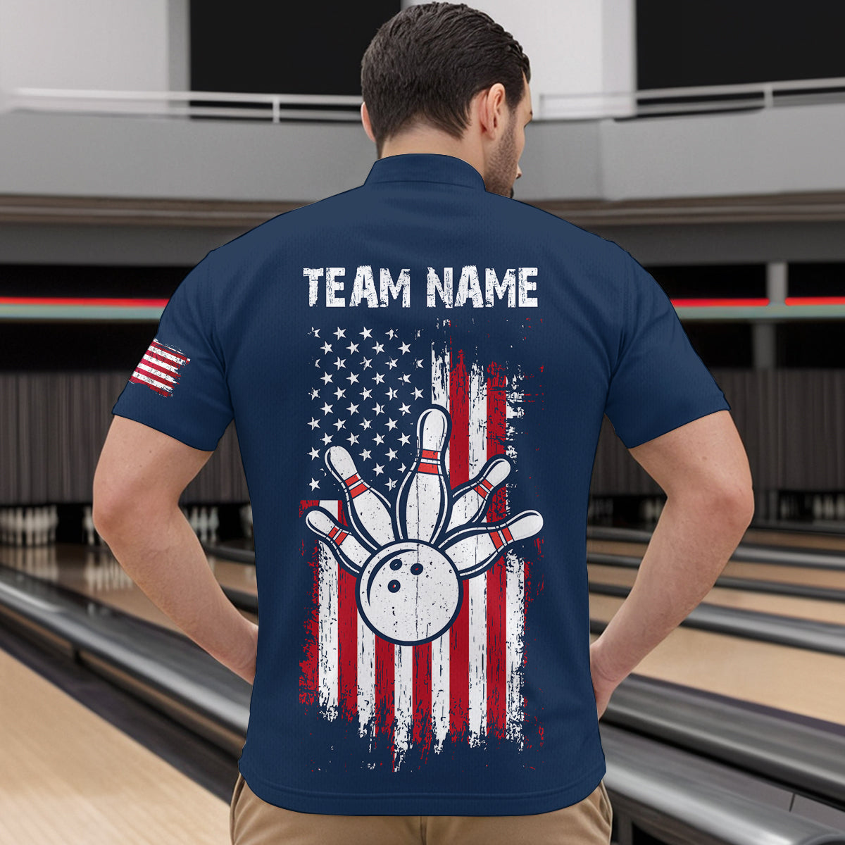Patriotic Bowling Shirts American Flag Bowling Polo & 1/4 Shirt for Men Women Team MBL16