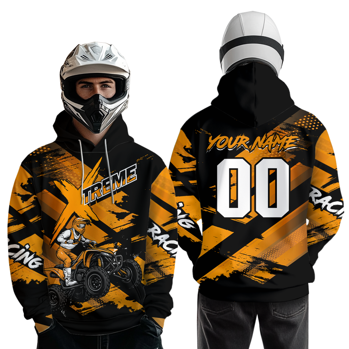 Personalized Atv Motocross Hoodie For Adult&Kid Upf30+ Orange Quad Bike Shirt Off-Road Atv Mx Racing NHN012