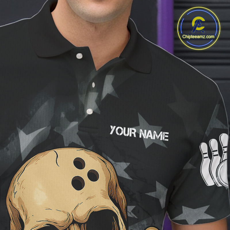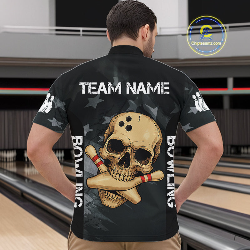 Personalized Black American Flag Skull Bowling Shirts For Men Custom Team's Name Skull Bowler Jerseys NQS11082