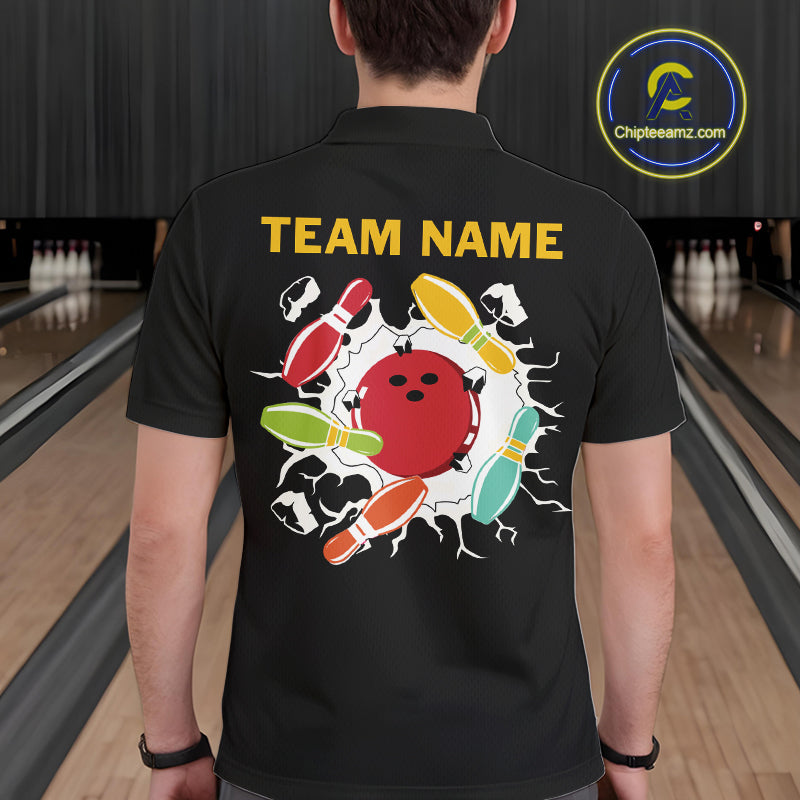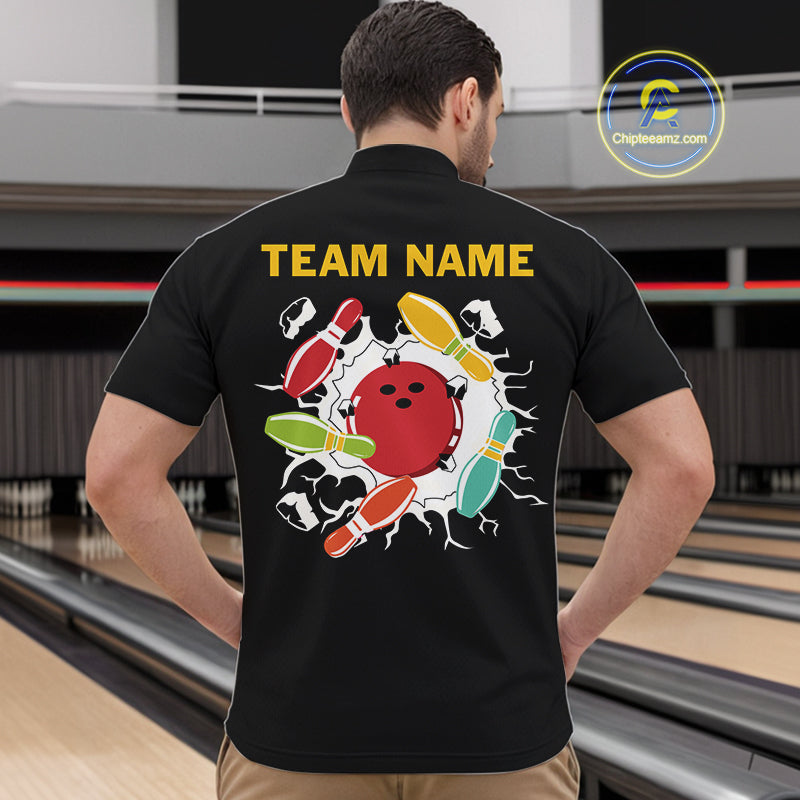 Personalized Black and Colorful Retro Bowling Polo, 1/4 Zip Team Shirts For Men Custom Bowling Gifts NQS11106