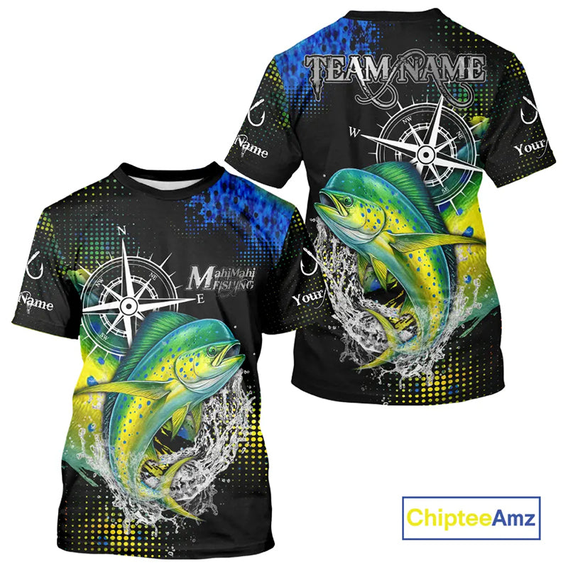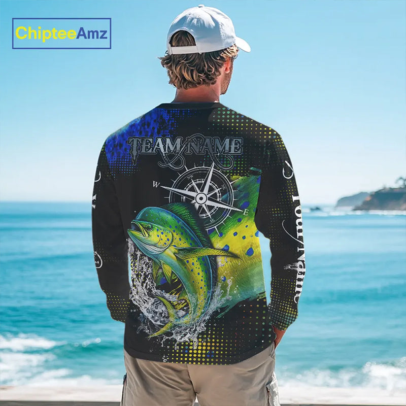 Personalized Black and Green Mahi Mahi fishing scales compass Performance long sleeve Fishing Shirts NQS11216