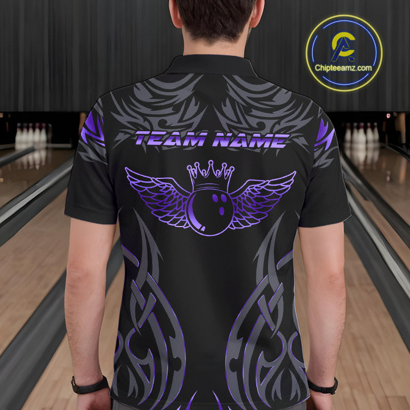 Personalized Black And Purple tribal pattern Bowling Shirts For Men, angel wings Bowling Team jerseys NQS10760