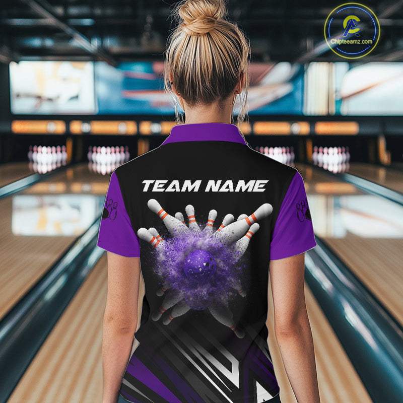 Personalized Bowling shirts for women custom Black and Purple Bowling team jerseys, gift for bowlers NQS11080