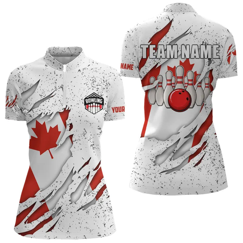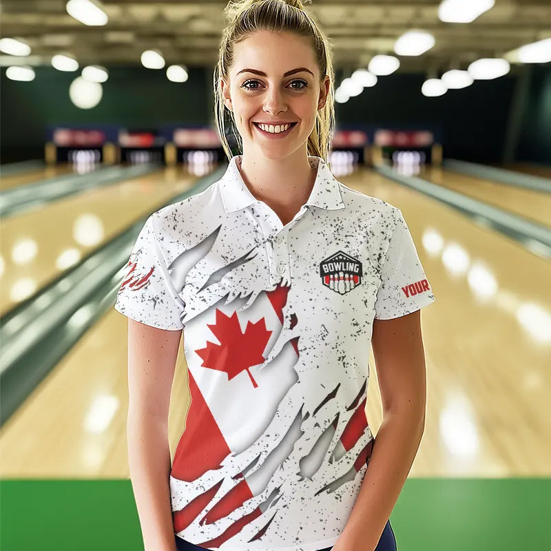 Personalized Canadian Flag Grunge pattern Bowling Shirts For Women Custom Canada Bowling Team Jerseys NQS9495