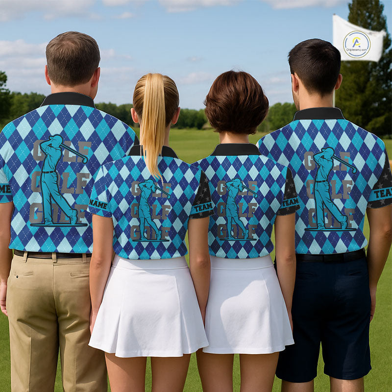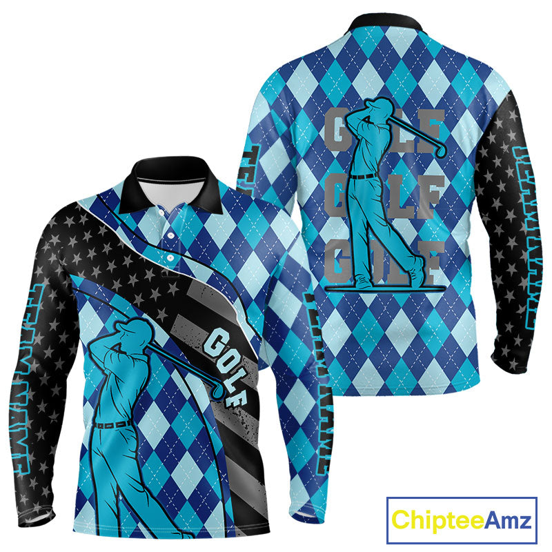 Personalized golf polo shirts for men blue argyle pattern black American Flag patriotic golf shirts NQS11368