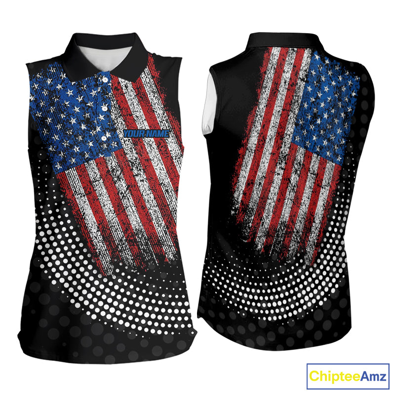 Personalized golf sleeveless polo shirts Vintage American Flag Custom patriotic golf tops for ladies NQS9835