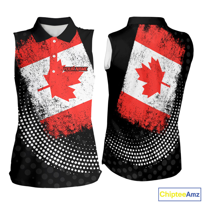 Personalized golf sleeveless polo shirts Vintage Canadian Flag Custom patriotic golf tops for ladies NQS9836