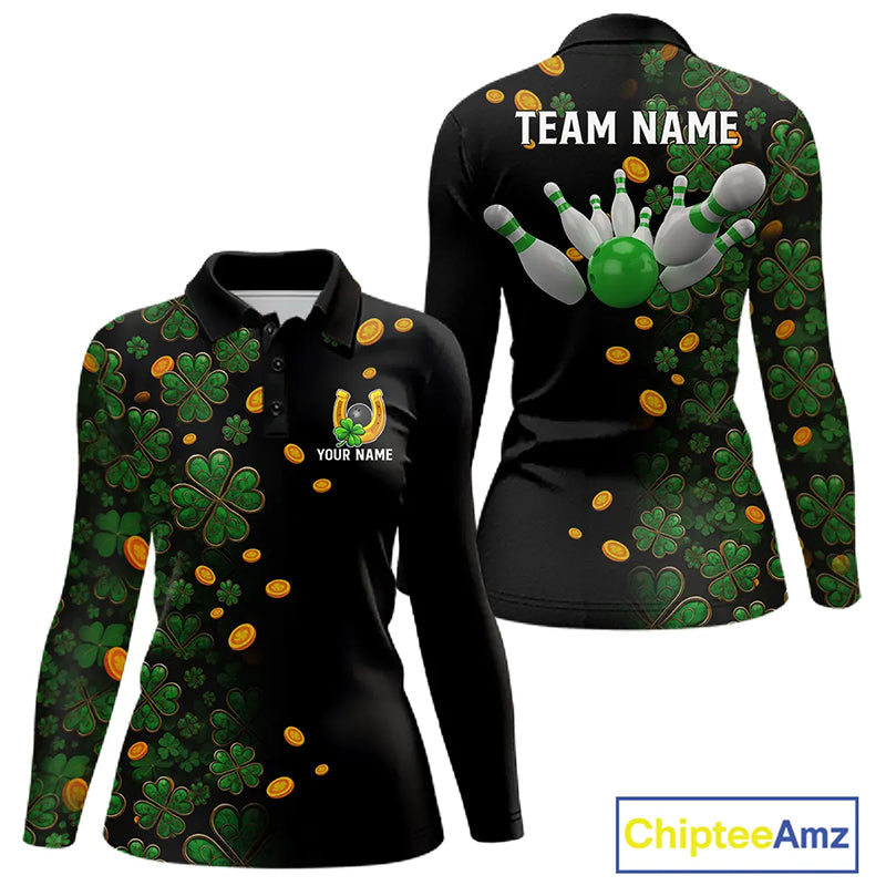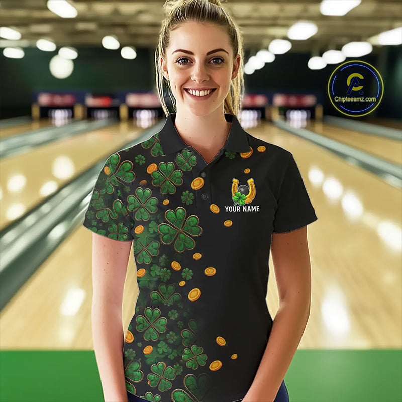 Personalized Green Clover St Patrick's Day pattern Bowling Shirts For Women, Team Bowling Jerseys NQS11206
