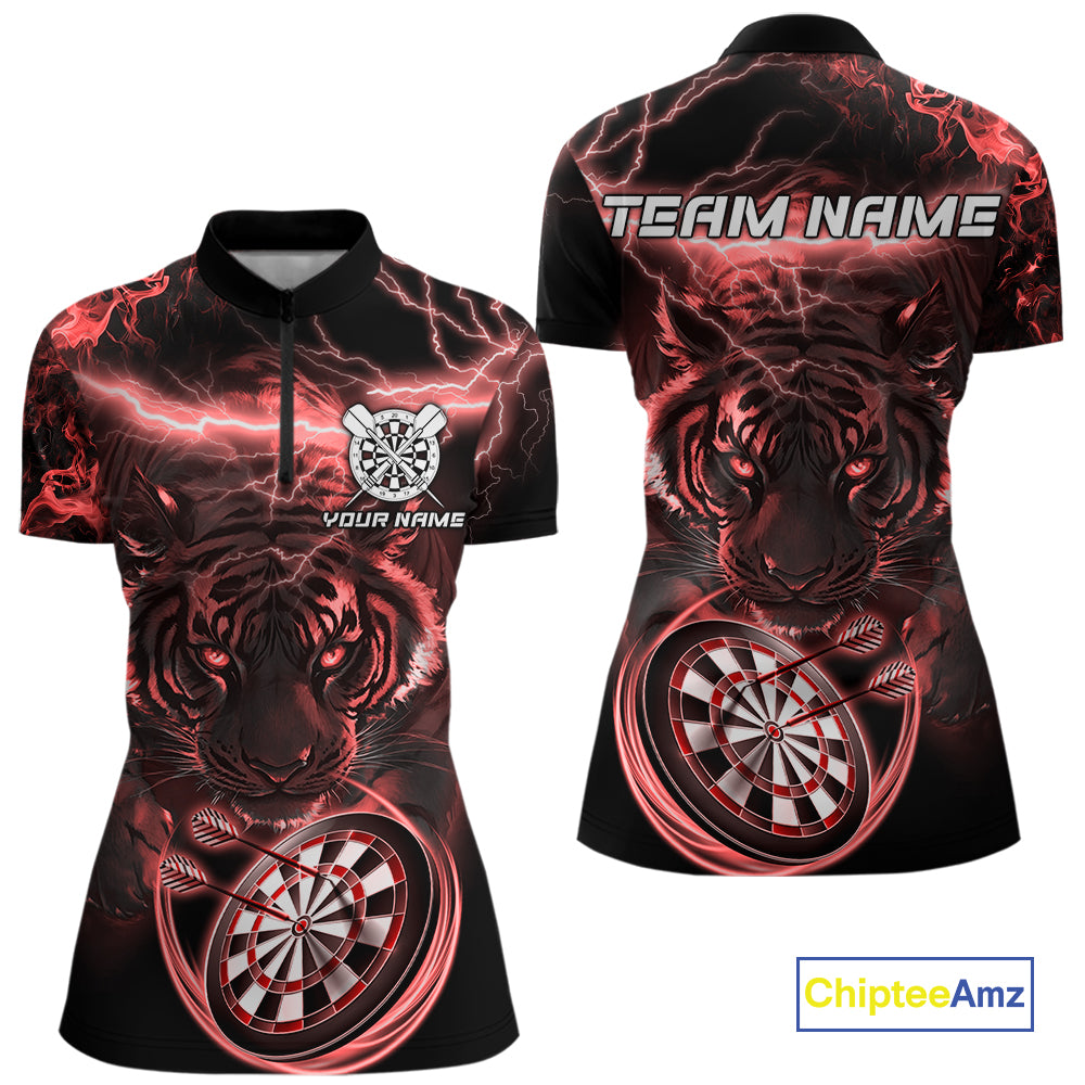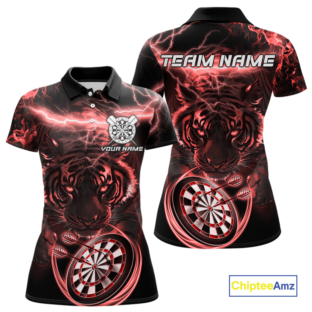 Personalized Red Lightning Thunder Storm Tiger Darts Shirts For Women Custom Dart Team Jerseys NQS10442