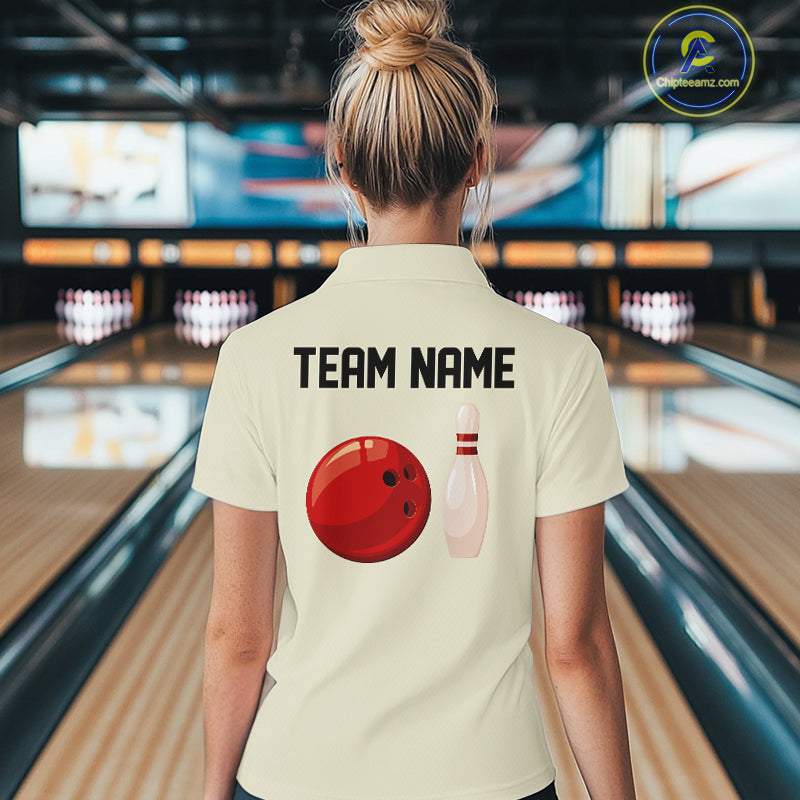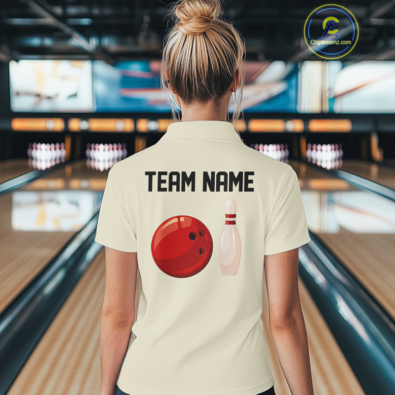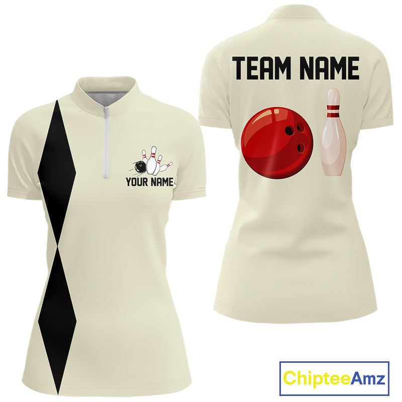 Personalized Retro Bowling Polo, 1/4 Zip Shirt For Women custom vintage bowling team jersey | Beige NQS11015
