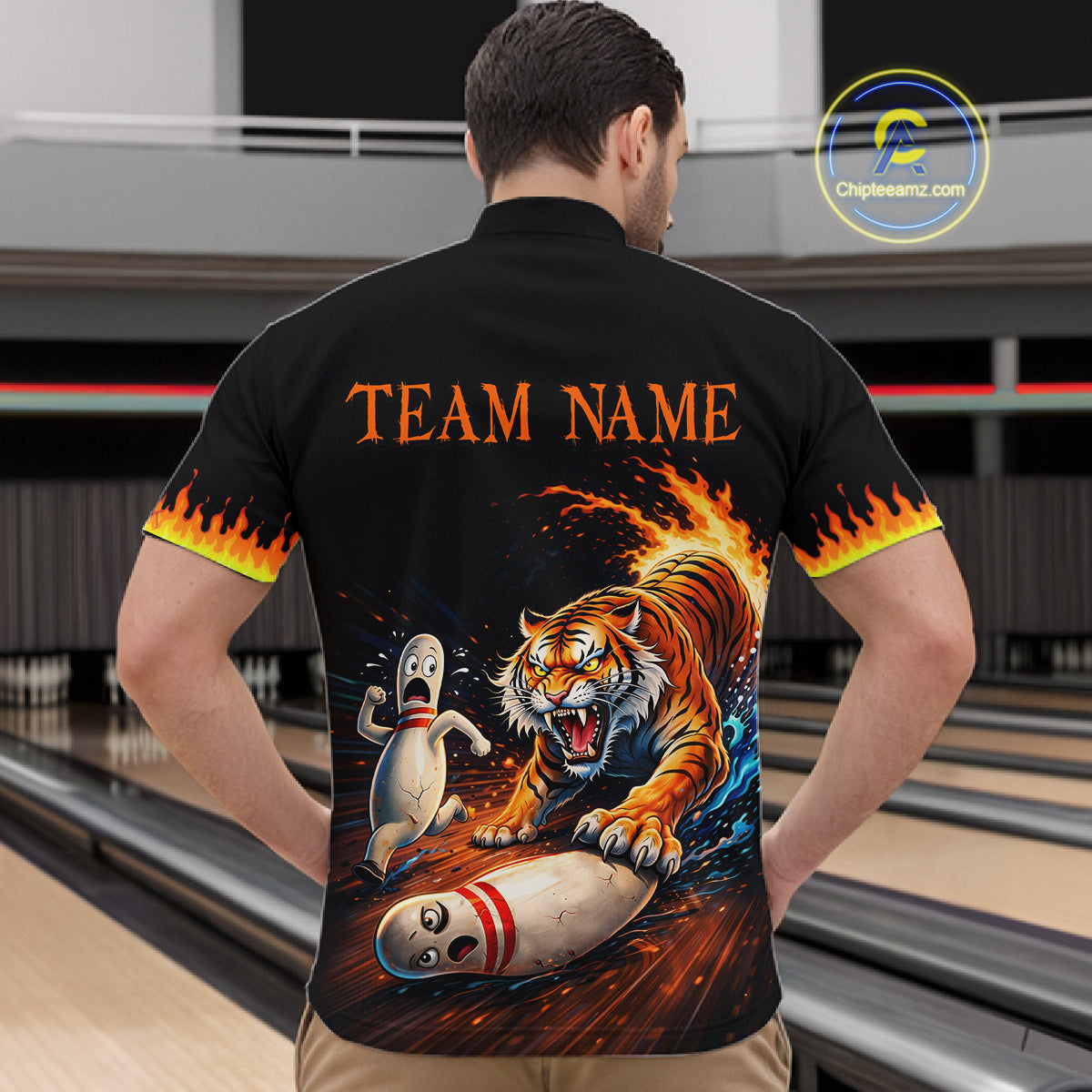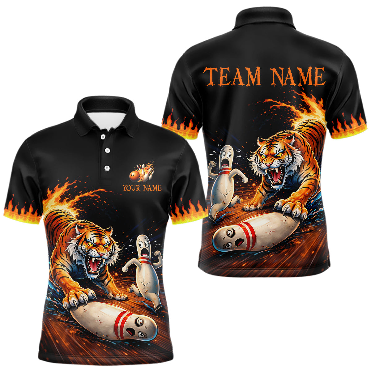 Personalized Tiger Bowling Shirt Orange Funny Bowling Team League Jersey for Men QZT832