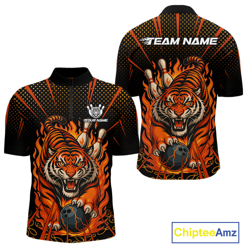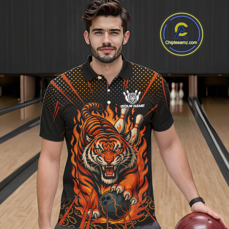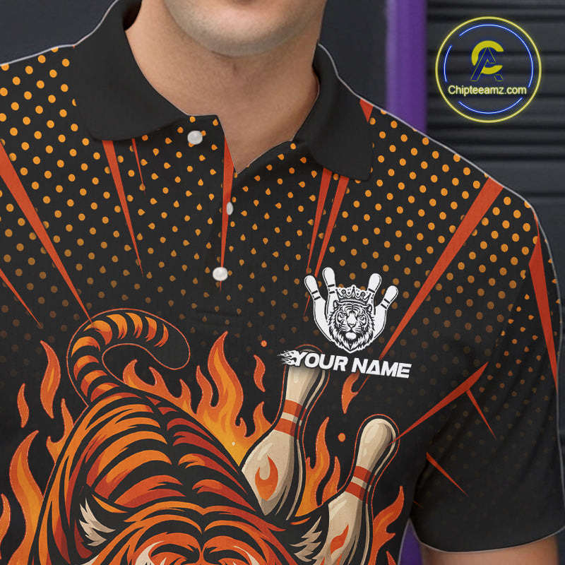 Personalized Tiger Bowling Shirts For men, Black and Orange Flame Team Tiger Bowling Jerseys NQS11110