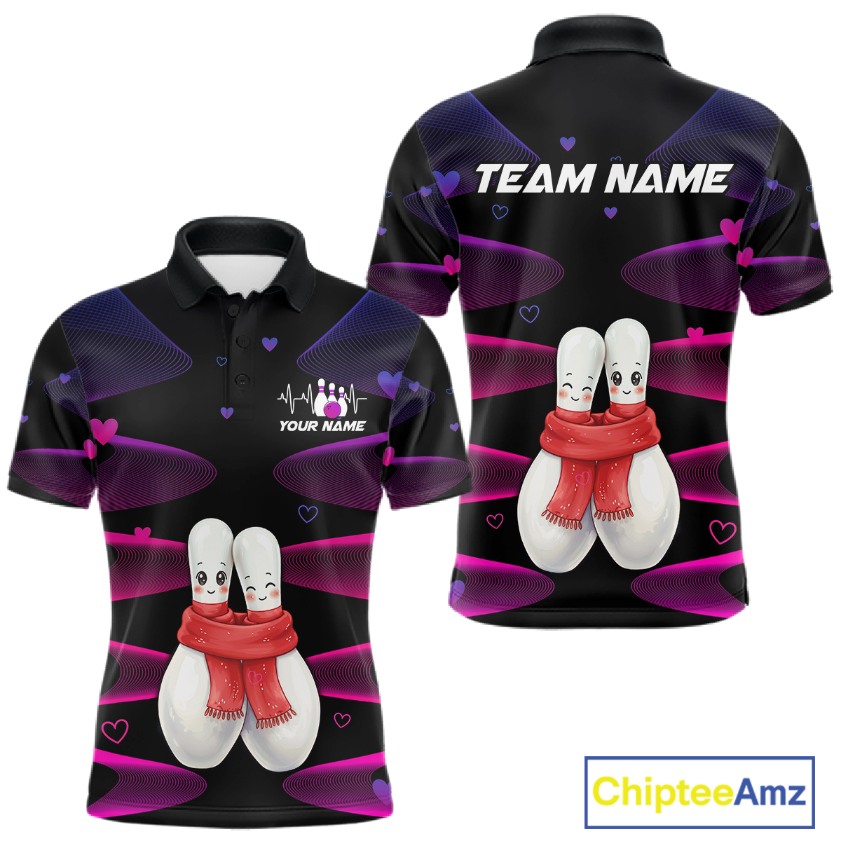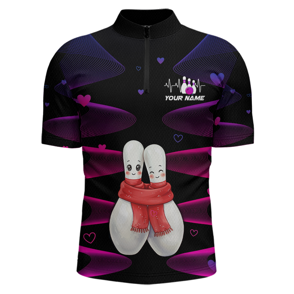 Personalized Valentine Bowling Shirt for Couples Bowling Jersey Pink Bowling Gift Polo & 1/4-Zip QZT870