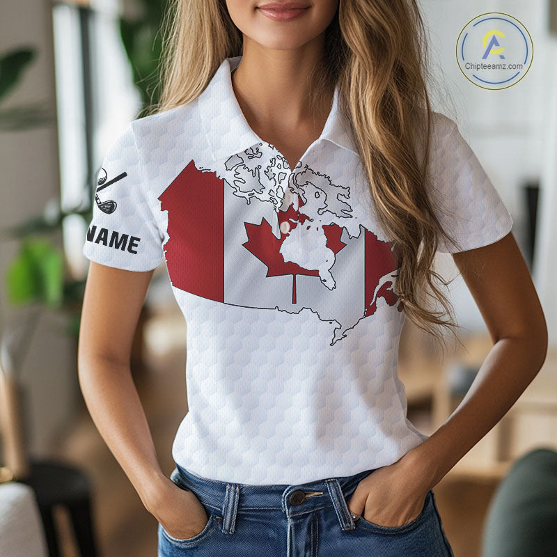 Personalized vintage Canadian Flag Women golf polo shirts Custom Patriotic Golf outfit For ladies NQS10182