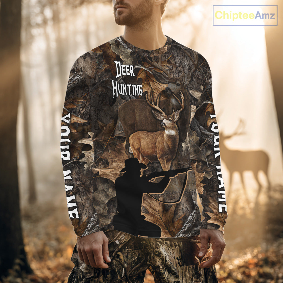 Personalized Whitetail Deer Hunting Brown Camo with Hunter 3D Print Custom Name Shirts, Hunting Gift NBT269