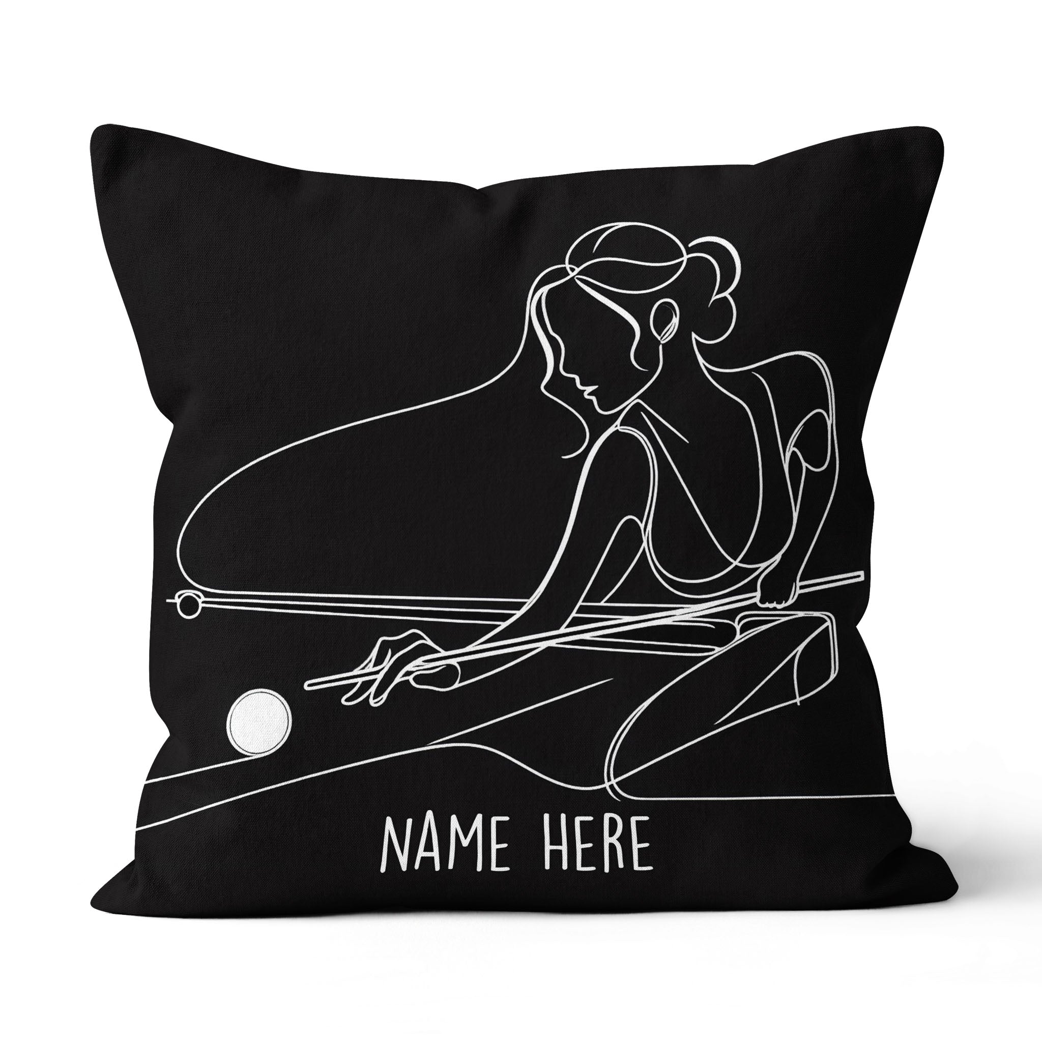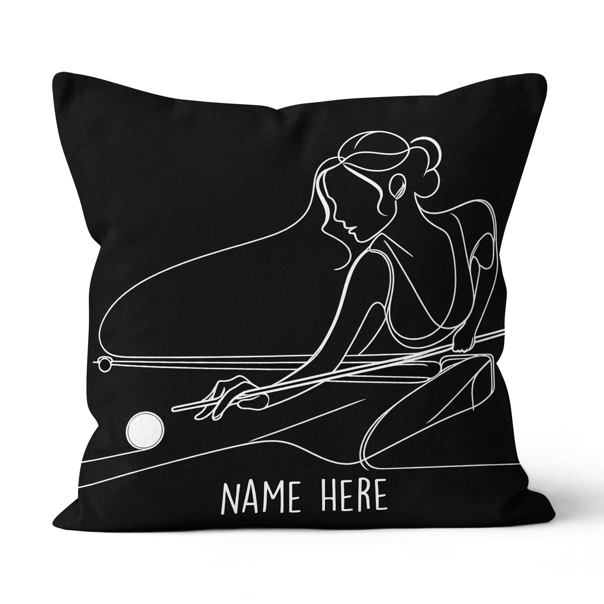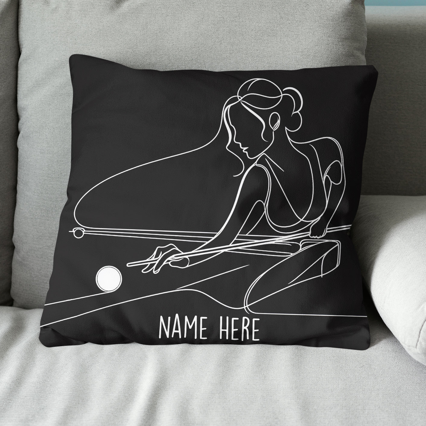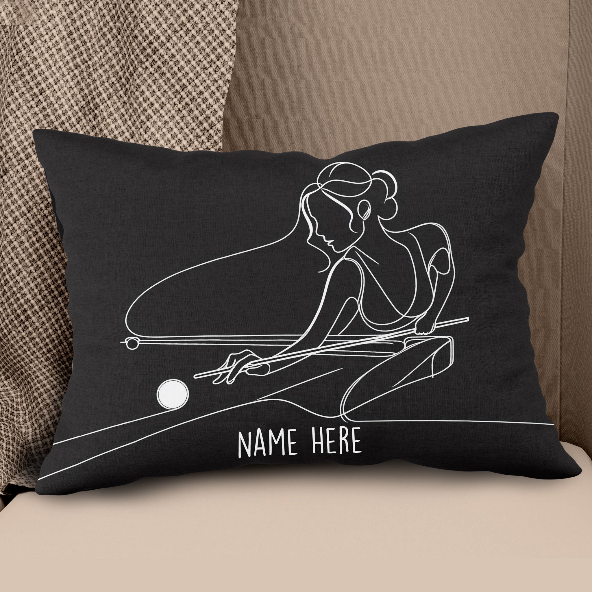 Personalized Woman Playing Pool Billiards Line Drawing Pillow Pool Gifts VHM0915