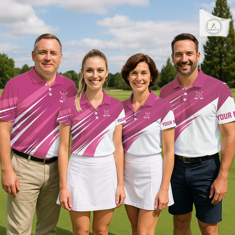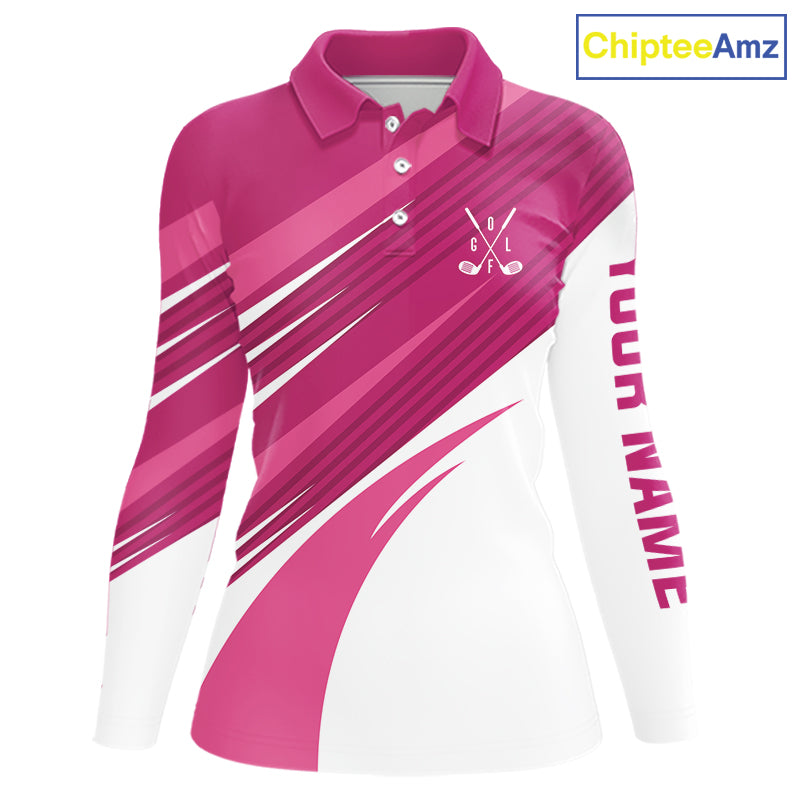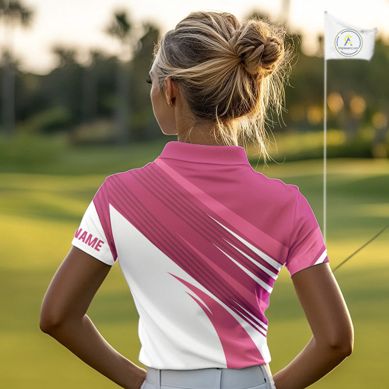 Pink and white Womens golf polo shirts custom golf tops for ladies, personalized golf gifts NQS11273