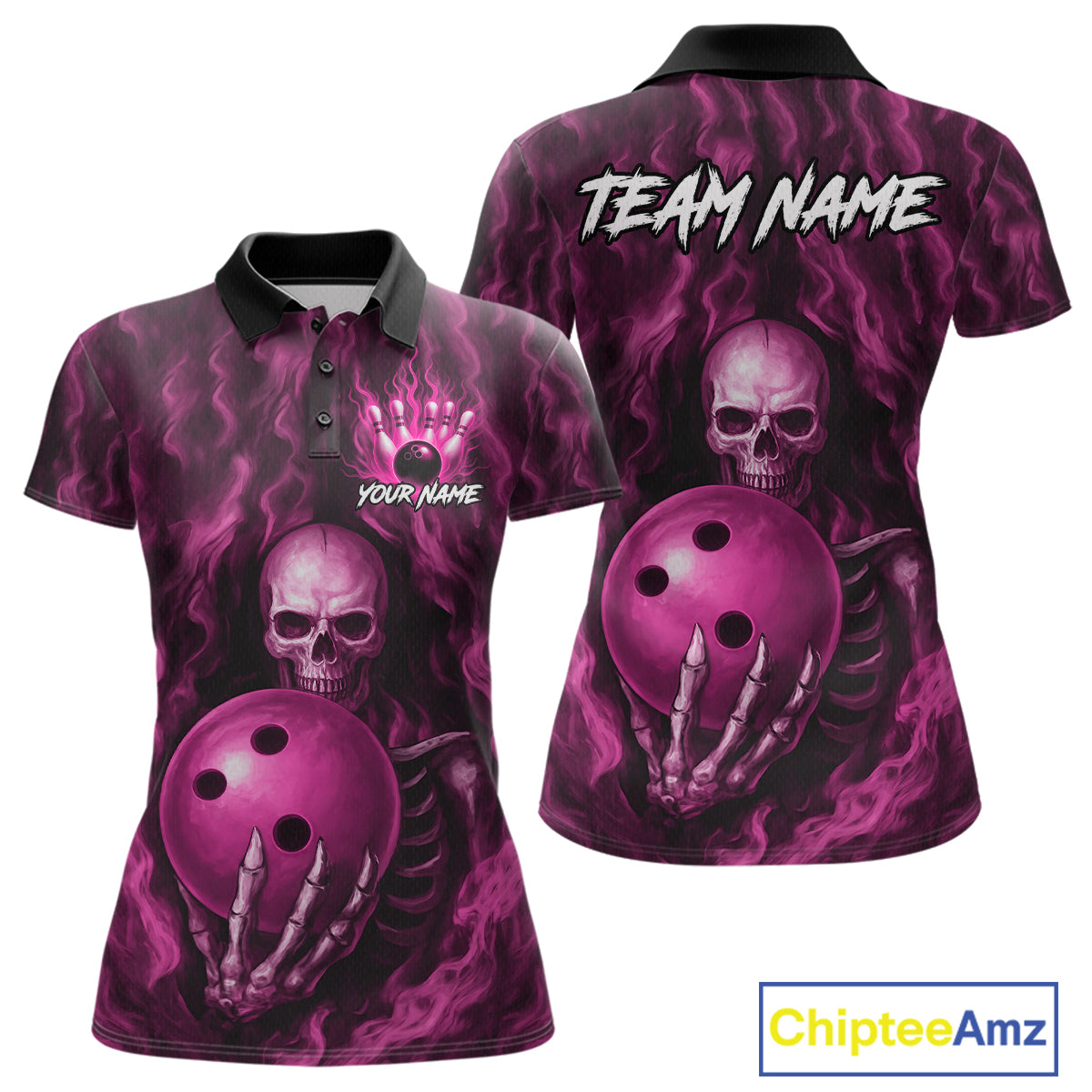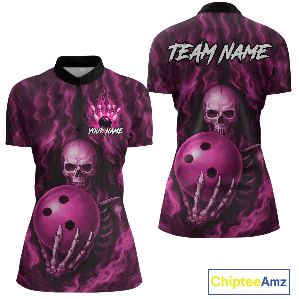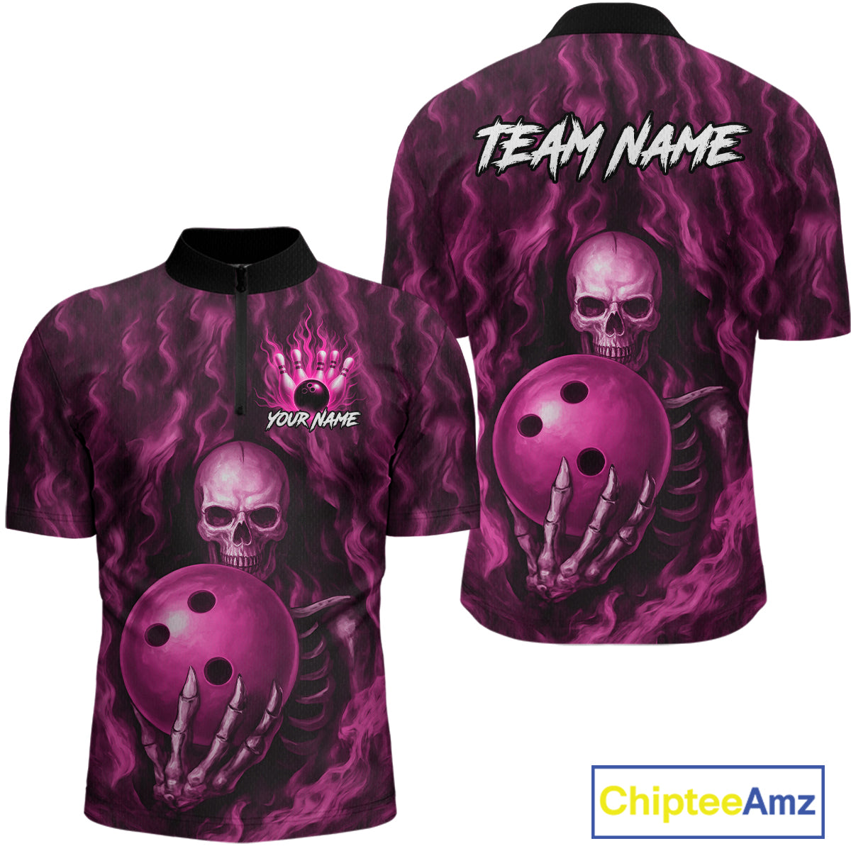 Pink Skull Bowling Shirts for Team Men Women Custom Bowling Jerseys for Bowlers MBL206