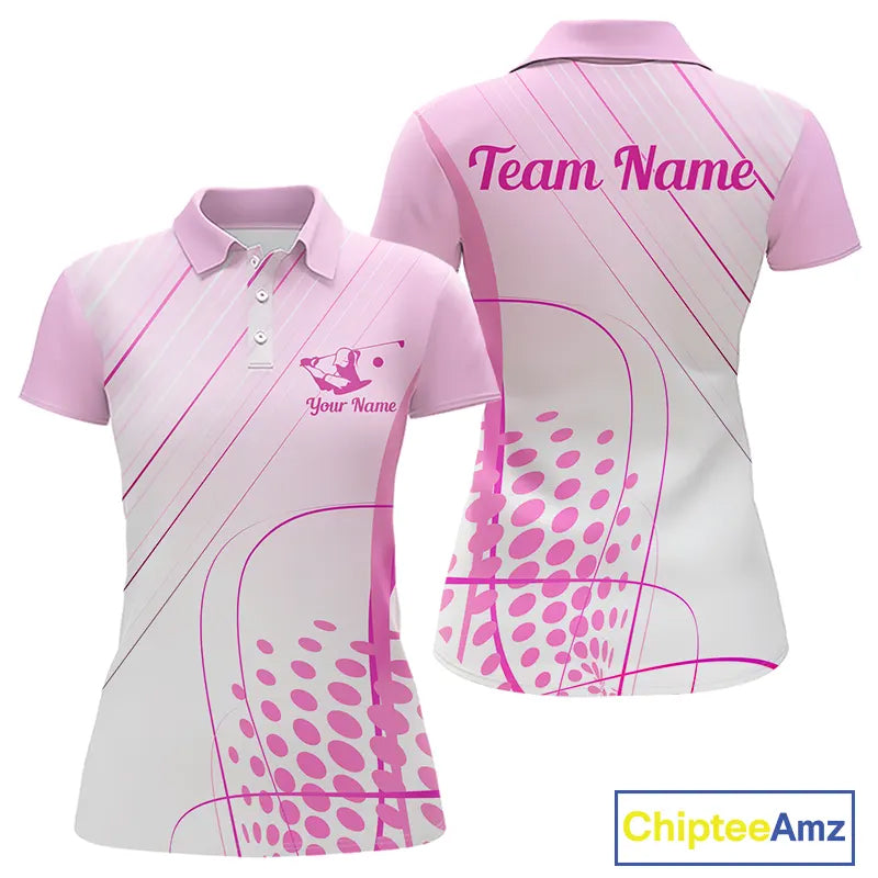 Pink White Womens Golf Polo Shirts Custom Name Golf Shirts For Women Personalized Golf Gifts NHN0015