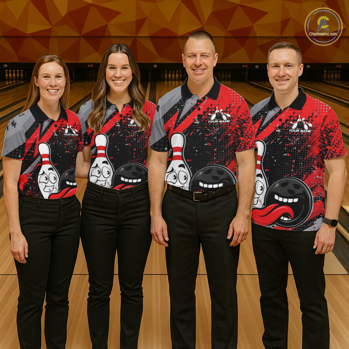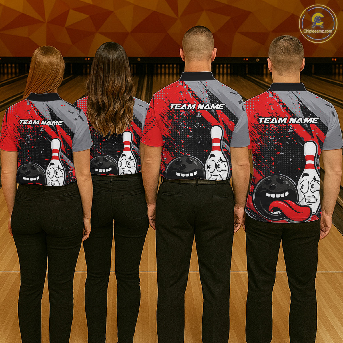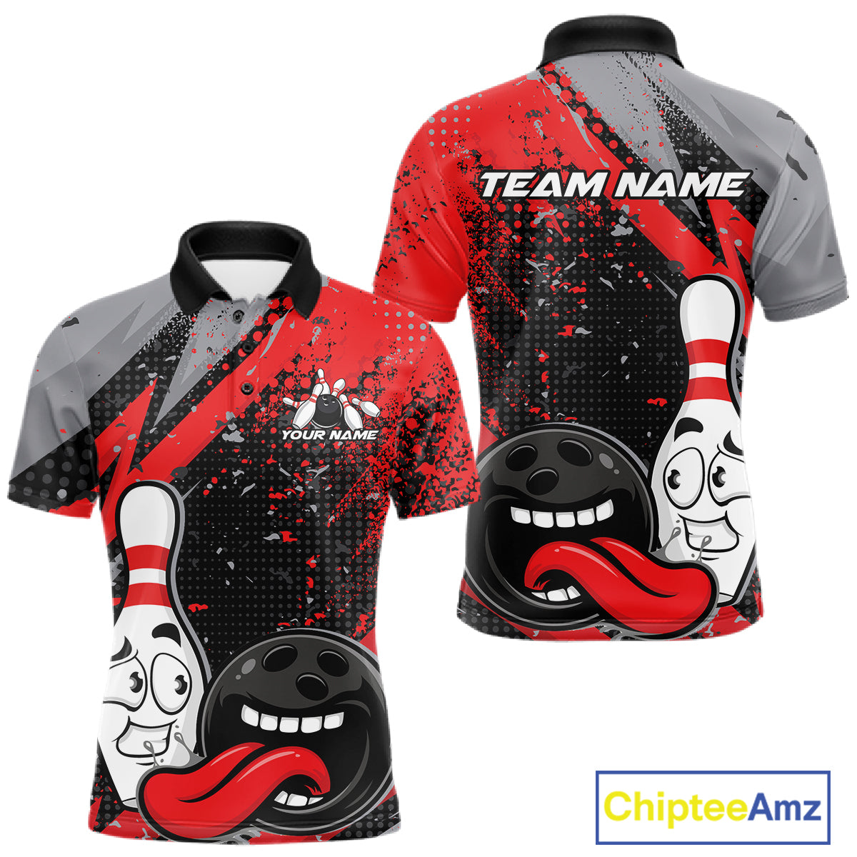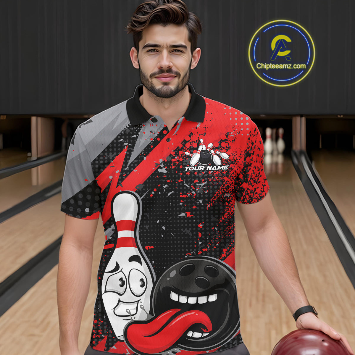 Custom Funny Bowling Polo Shirt For Men, Red Bowling Ball And Pin Bowling Jersey IPHW10257